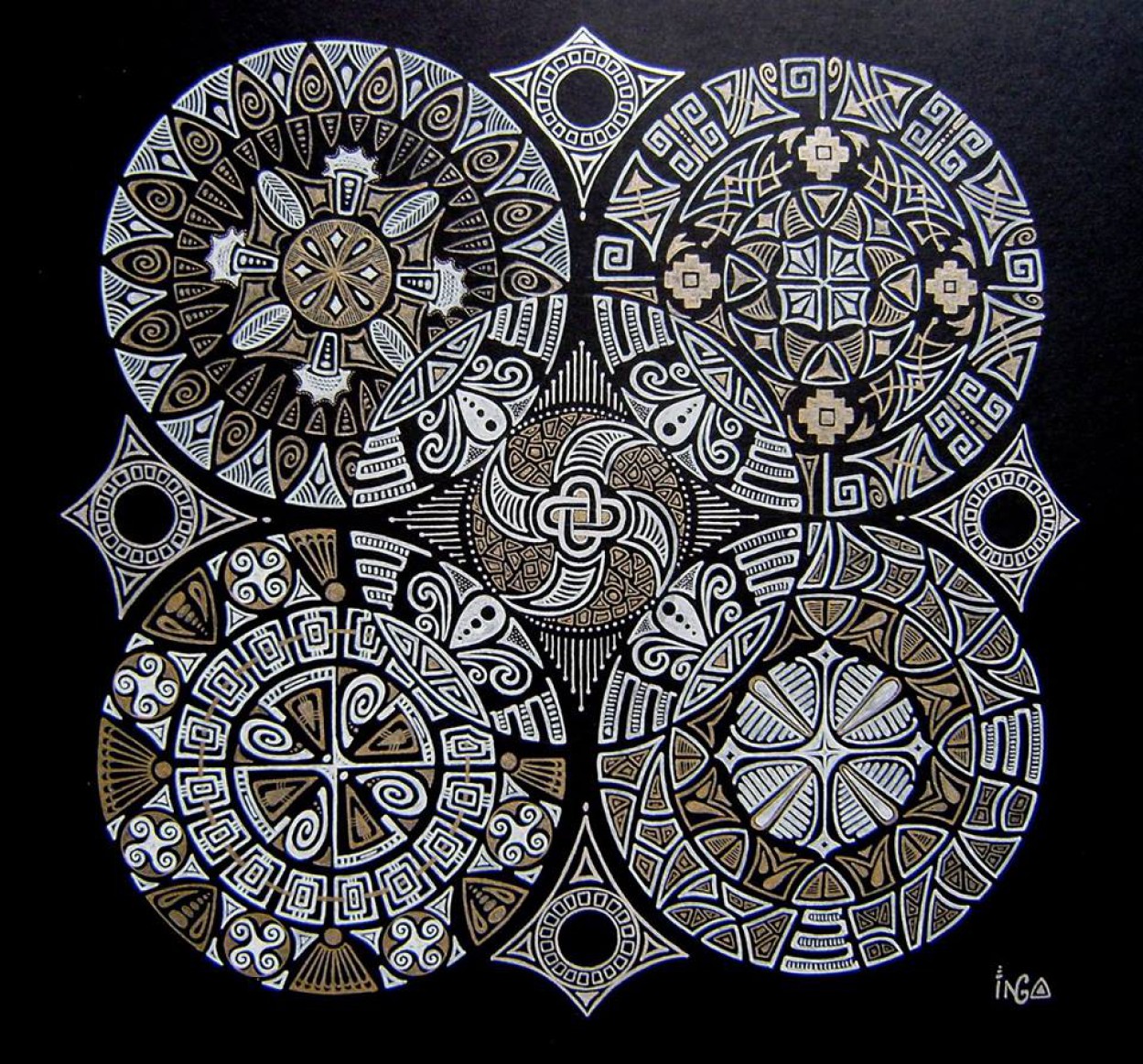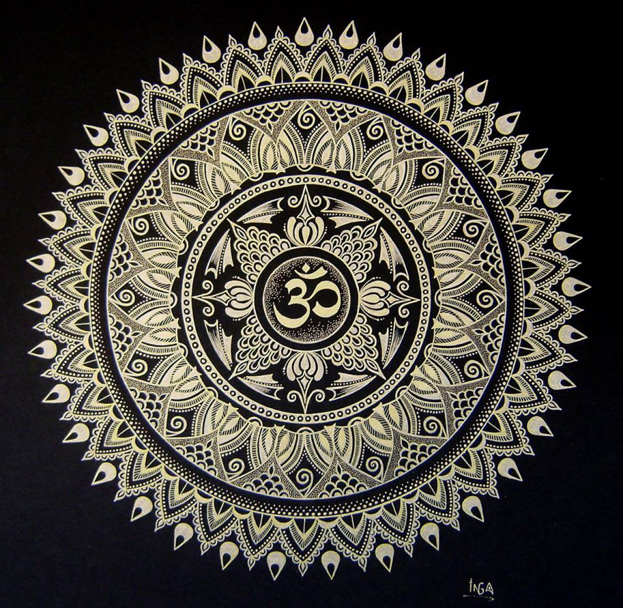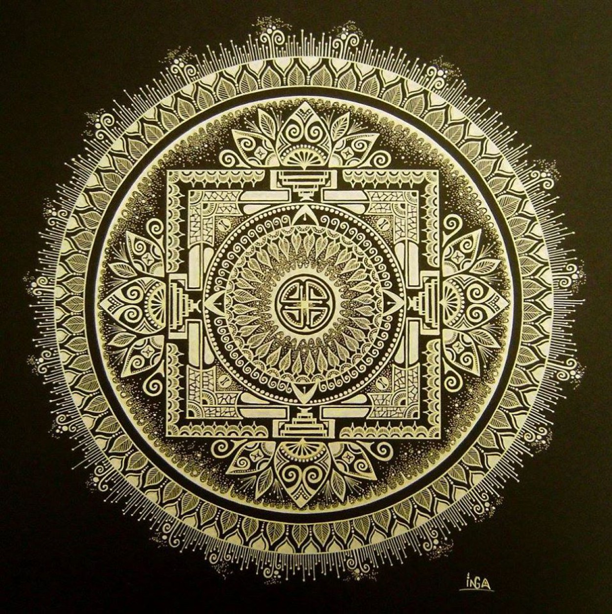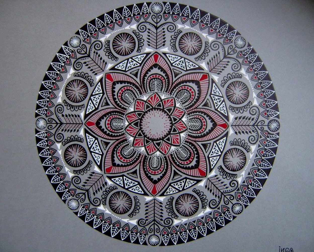 Mandalas Inga piešti pradėjo maždaug tuo pat metu, kaip ir dalyvauti pėsčiųjų žygiuose, o pirmoji jos mandala gimė iš lėkštės.