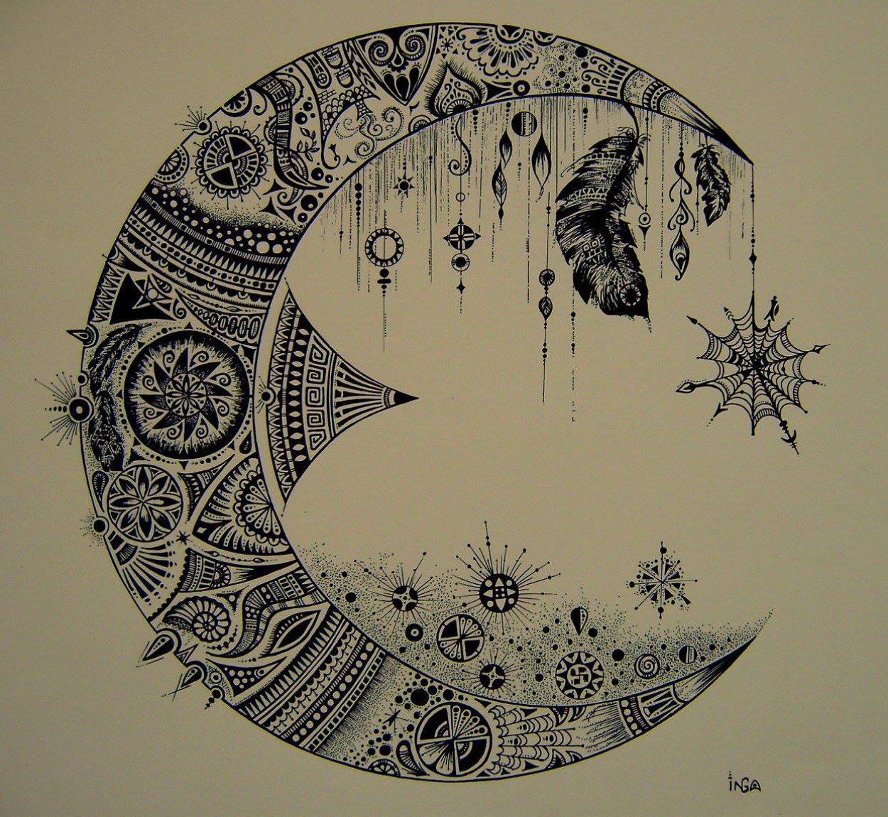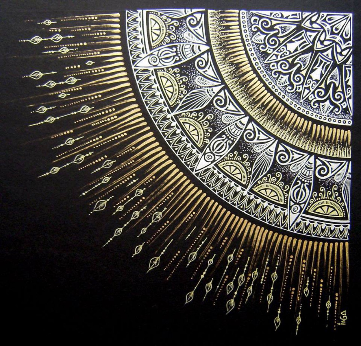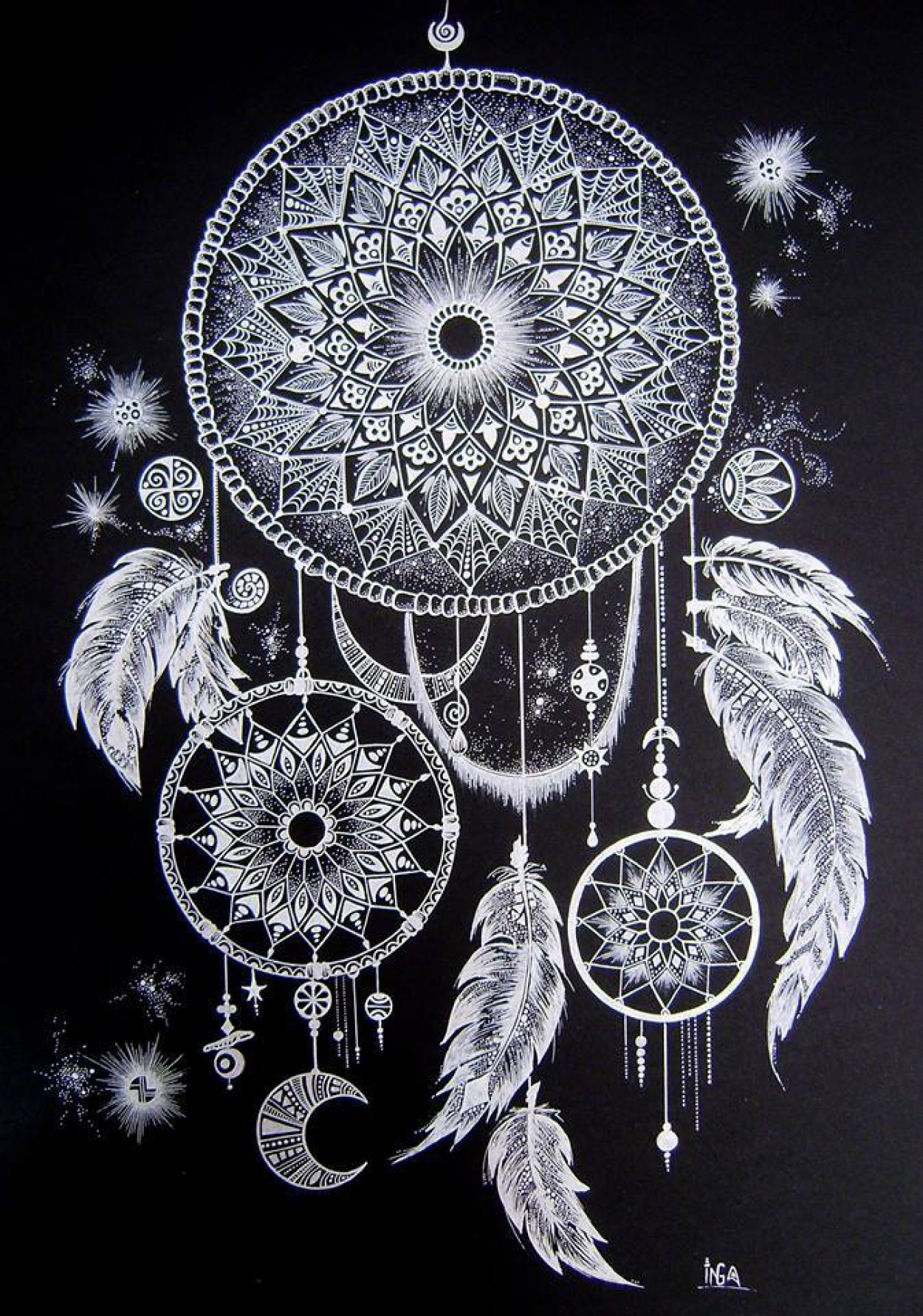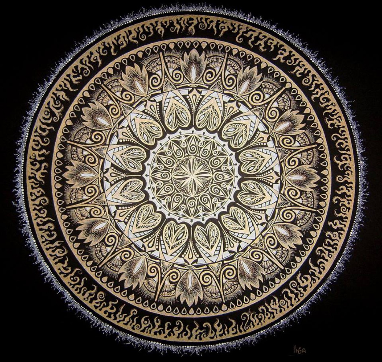 Mandalas Inga piešti pradėjo maždaug tuo pat metu, kaip ir dalyvauti pėsčiųjų žygiuose, o pirmoji jos mandala gimė iš lėkštės.