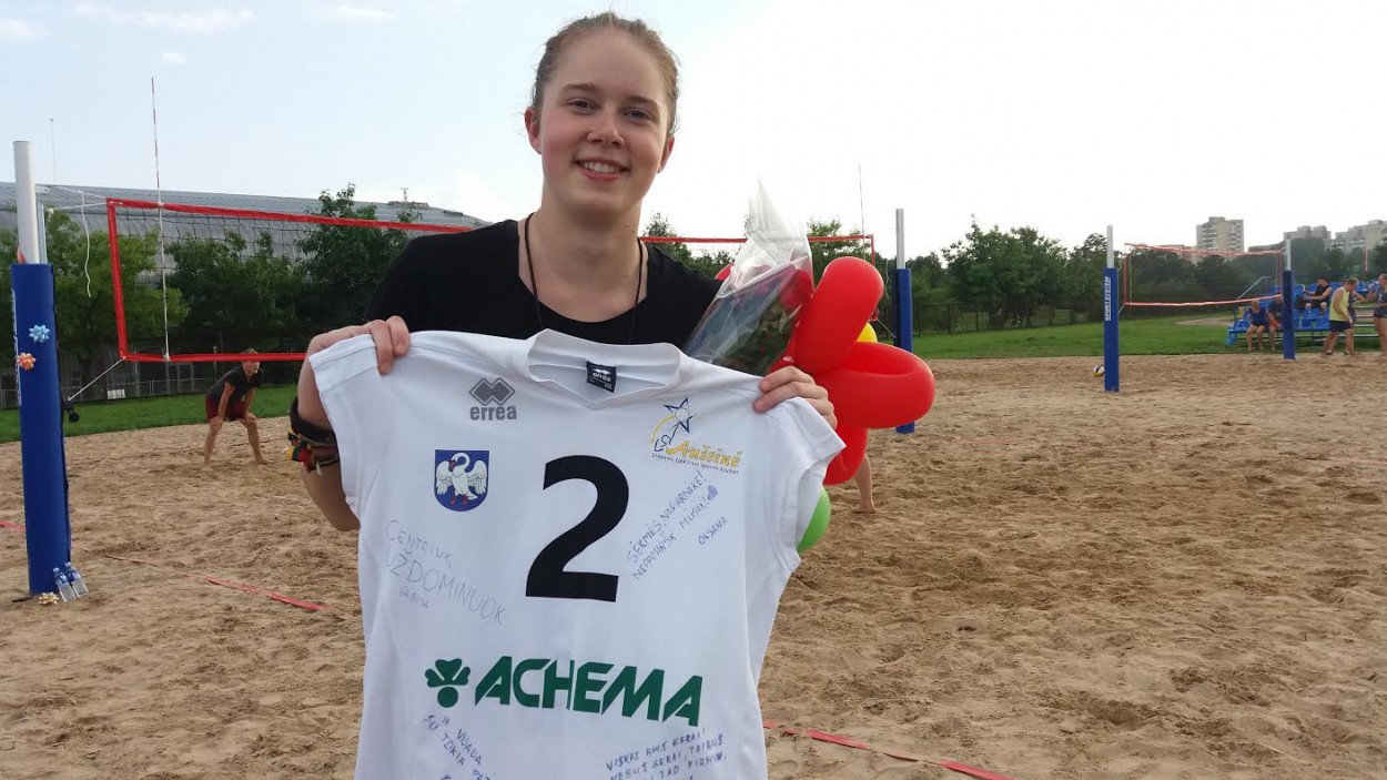 Prieš vakar vykusias antrosios dienos Jonavos paplūdimio tinklinio lygos rungtynes į Jungtines Amerikos Valstijas buvo išlydėta Jonavos „Achema-KKSC“ moterų tinklinio komandos puolėja Gintarė Mackevičiūtė.