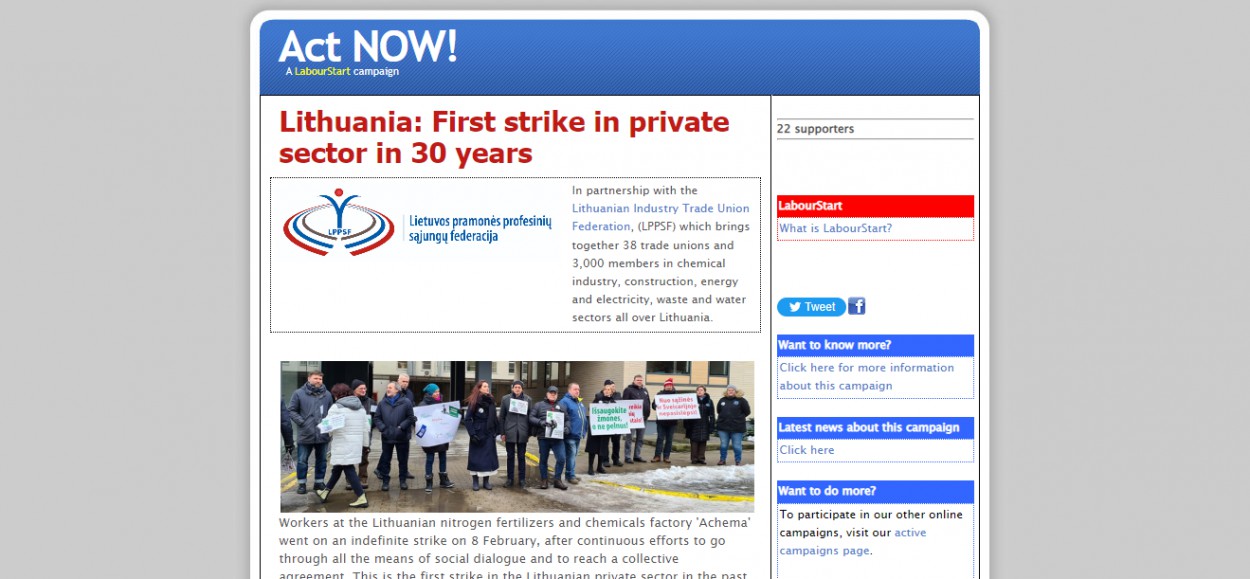 O štai dabar palaikantieji streikuojančiųjų teisę į kolektyvines derybas gali pasirašyti tarptautinę peticiją “Labourstart” platformoje. Tai pirmoji peticija šioje pasaulinėje platformoje, skirta Lietuvai!