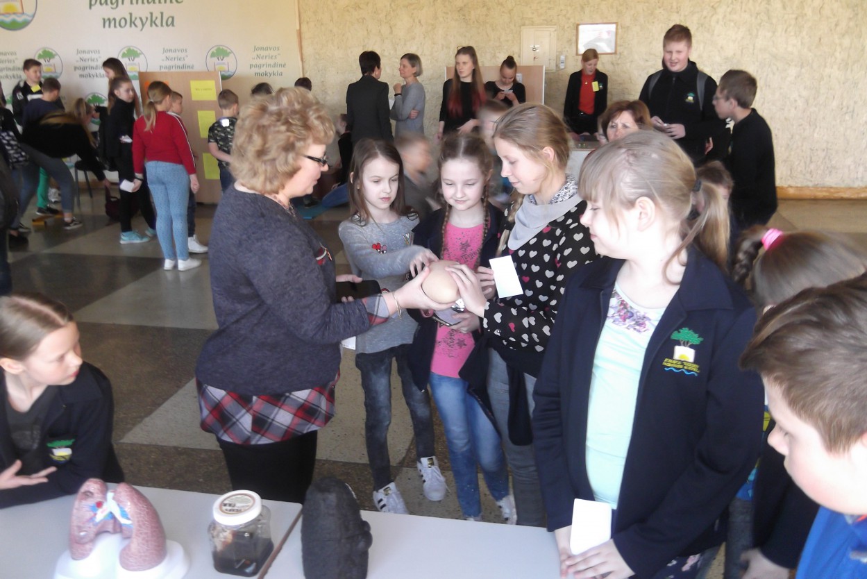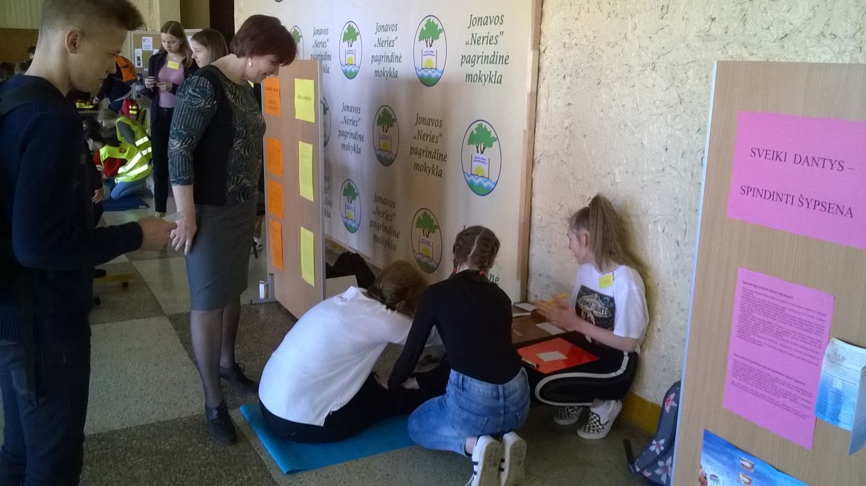 Minėdami Pasaulinę sveikatos dieną „Neries” pagrindinės mokyklos sveikatos priežiūros specialistas J. Lisovskis ir gamtos mokslų metodinės grupės mokytojai tradiciškai pakvietė mokyklos bendruomenę į neįprastą ir smagią vienos dienos akciją „Pasirūpink savo sveikata”. Akciją gausia mokomąja vaizdine medžiaga ir įranga nuolat remia Jonavos visuomenės sveikatos biuras. Visą dieną pertraukų metu kiekvienas norintis gali įsivertinti savo pusiausvyrą vadinamuoju Flamingo testu, o kvėpavimo sistemos pajėgumą naudojant Štangės testą. Nemažai mokinių ir mokytojų norėjo pasitikrinti regėjimą, įvertinti rankų jėgą, pasimatuoti kraujospūdį, o pasisvėrę ir pasimatavę ūgį sužinoti savo KMI. Mokyklos sveikatos priežiūros specialistas kiekvienam norinčiam padėjo įsivertinti kūno masės raumeninę ir riebalinę masę. Šiemet galima buvo pasimatuoti lankstumą. Visiems mokiniams buvo pravartu dar kartą paklausyti patarimų apie kasdieninę burnos higieną ir pasitikrinti, ar taisyklingai prižiūri savo dantis. Juk kartojimas – mokslų motina.