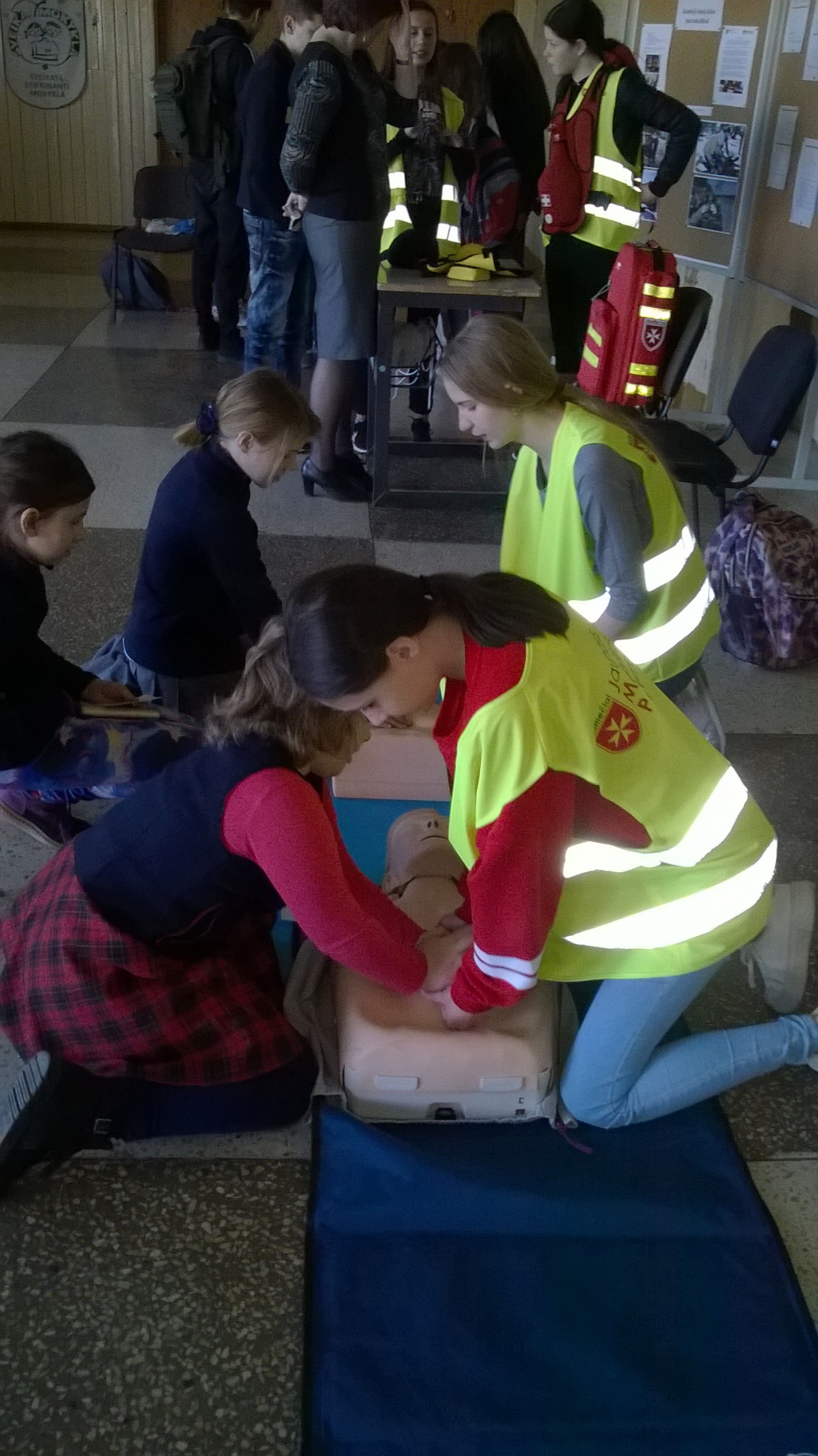 Prie akcijos jau ne pirmus metus prisijungia ir jaunųjų mokyklos paramedikų komanda. Jie supažindino ir mokė, kaip gaivinti nukentėjusį žmogų, kaip suteikti pirmąją pagalbą susižeidus ar užspringus.