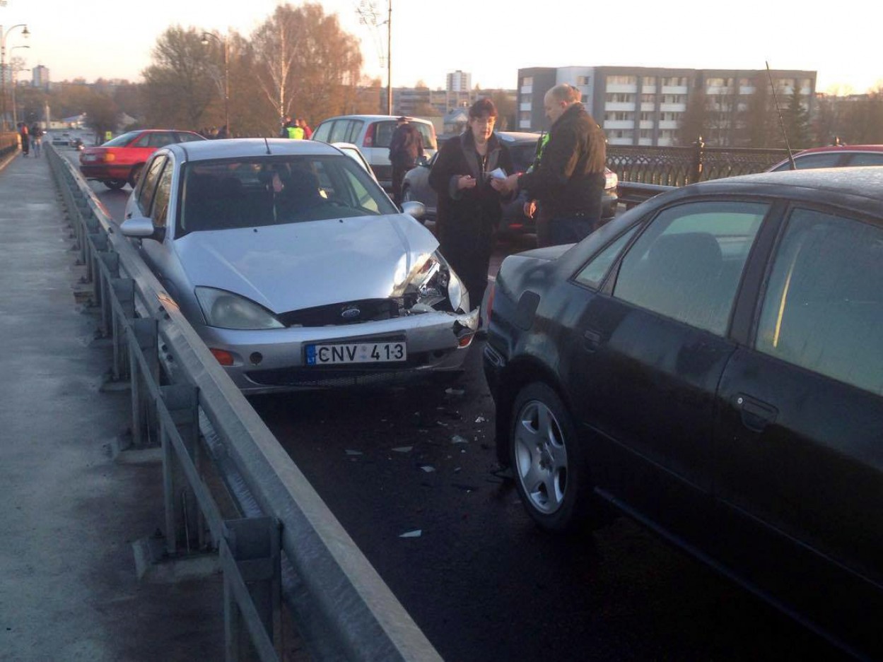 Kaip pranešė policija, ant pagrindinio miesto tilto susidūrė automobiliai. Įvykio metu žmonės nenukentėjo, tačiau apdaužyti net keturi automobiliai.