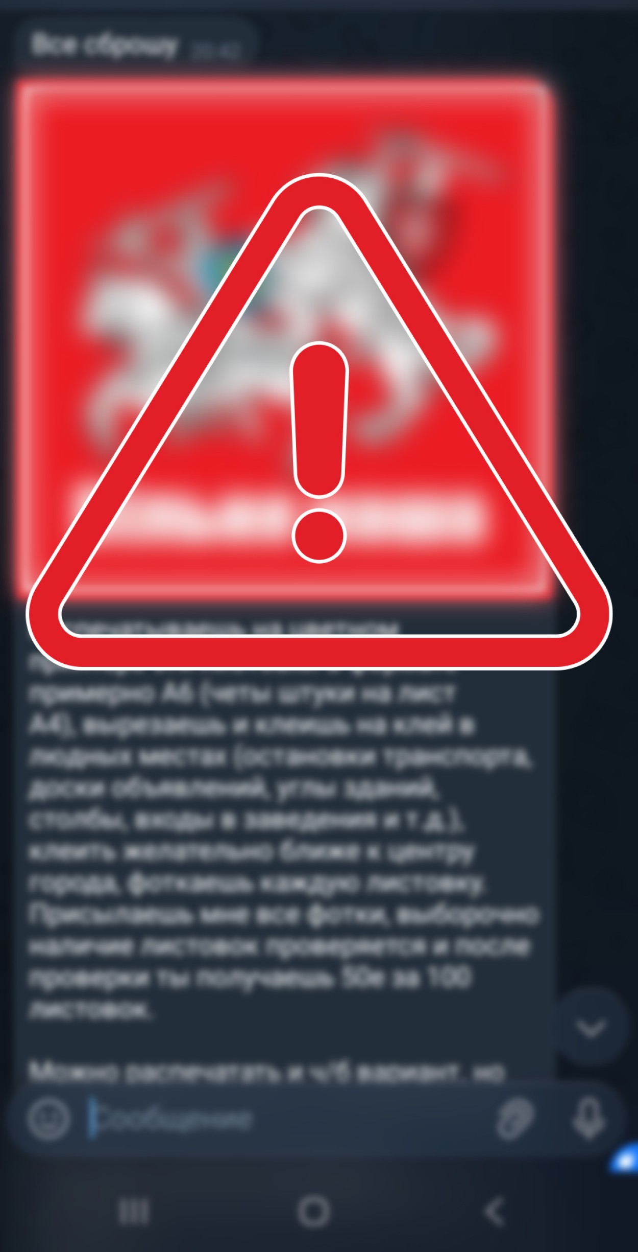 Viename iš pastarųjų AOTD fiksuotų atvejų socialiniame tinkle „Telegram“, verbuojamo asmens prašoma išplatinti skrajutes su užrašu užsienio kalba „Vilnius mūsų“. Už atliktą darbą siūlomas atlygis. Verbuojamam asmeniui paprašius apmokėti patirtas išlaidas už spausdinimą, atsisakoma, nurodant prieš tai užklijuoti bent dalį skrajučių ir taip užtikrinti užduoties įvykdymą. „Šias skrajutes atspausdink spalvotu spausdintuvu A6 formatu, iškirpk ir priklijuok judriose vietose, geriausia klijuoti arčiau miesto centro, nufotografuok kiekvieną skrajutę. Atsiųsk man visas nuotraukas – atsitiktinai tikrinsim skrajutės matomumą, po patikrinimo gausi 50 eurų už 100 skrajučių“, – rašoma verbuojamam asmeniui išsiųstose žinutėse.