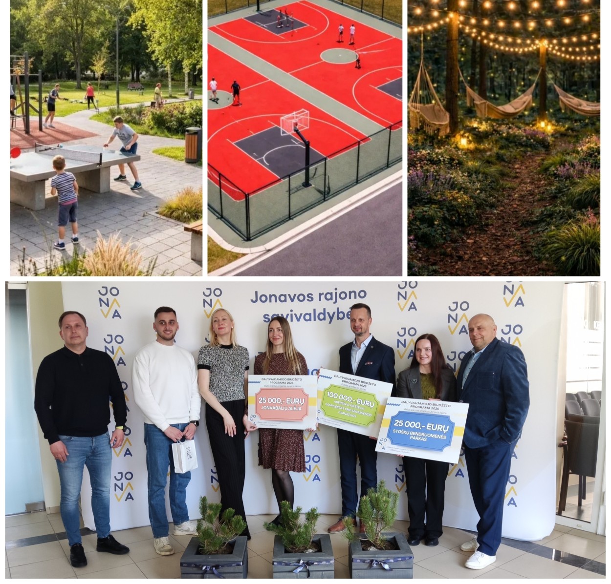 Jonavos rajone paskelbti 2026 metų Dalyvaujamojo biudžeto idėjų nugalėtojai. Pirmadienį jų autoriams įteikti simboliniai čekiai, o daugiausiai gyventojų palaikymo sulaukusios iniciatyvos jau netrukus virs realiais projektais.
