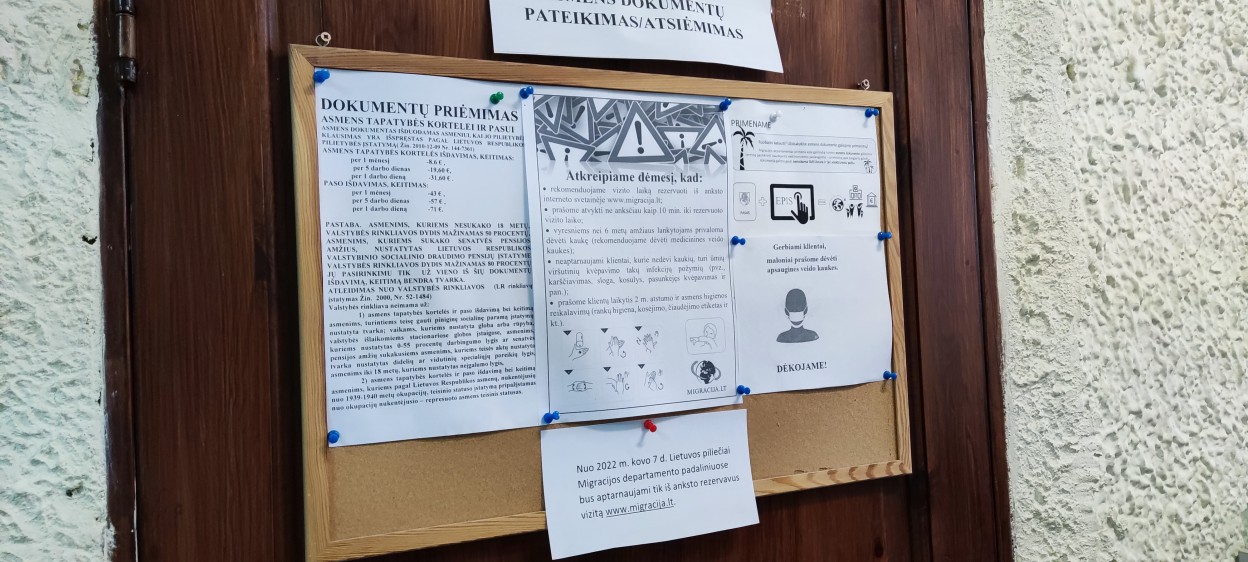 Migracijos departamento puslapyje šeštadienį, kovo 5-ąją patalpinta informacija, kad nuo 2022 m. kovo 7 d. Lietuvos piliečiai Migracijos departamento padaliniuose bus aptarnaujami tik iš anksto rezervavus vizitą www.migracija.lt.