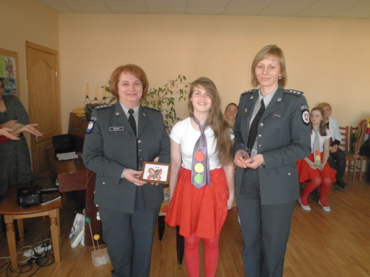 Viešnios pristatė vaikams mokomąjį filmą “Patarimai dviratininkams”, dalijosi su vaikais patirtimi, o viktorinoje buvo garbės teisėjos. Pareigūnės visus vaikus apdovanojo šviesą atspindinčiom liemenėmis, knygelėmis, kalendoriukais. Vaikai atsidėkojo pareigūnėms savo rankų darbo dovanėlėmis ir taip pat nesnaudė, renginio metu šoko, žaidė, varžėsi viktorinoje “Saugokis kelyje pats ir saugok kitus”.