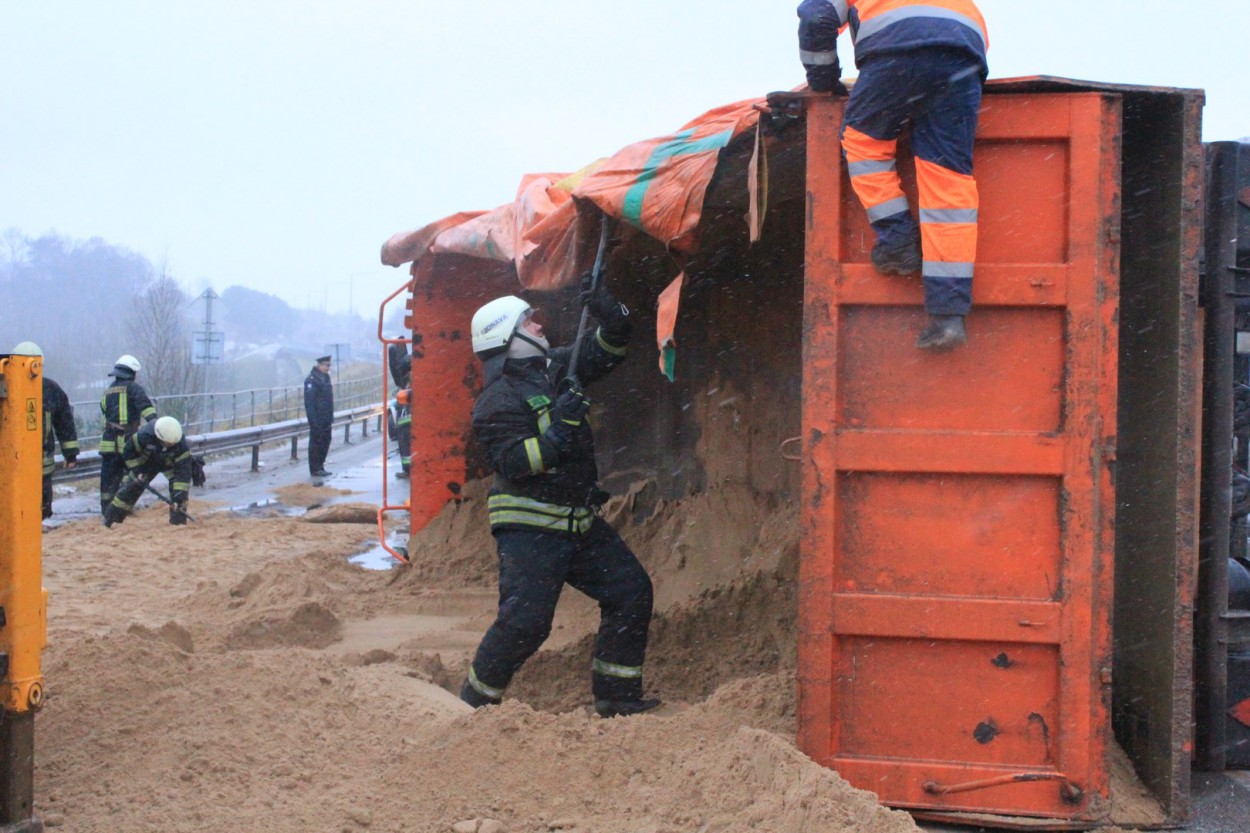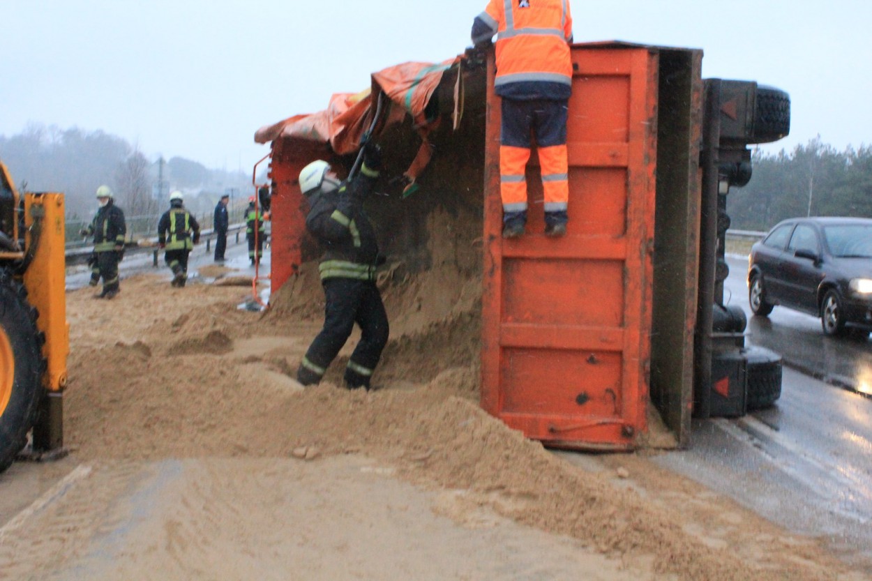 Trečiadienį apie 15.30 val. netoli bendrovės „Achema“ apvirto smėlį vežęs krovininis automobilis. Avarijoje nukentėjo vairuotojas, jį iš automobilio vadavo ugniagesiai gelbėtojai.