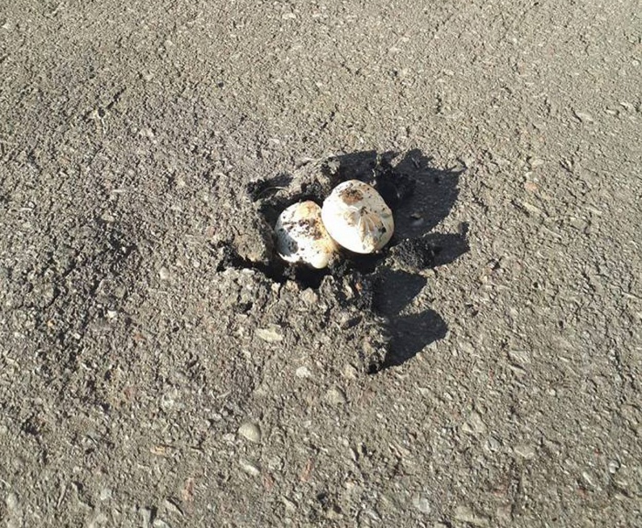 Ir iš ties, nuotraukoje matomi grybai esantys asfalto ertmėje nėra pokštas, kaip kažkada kauniečiai į asfaltuoto kelio duobes sodino gėles, taip atkreipdami dėmesį į prastą kelių būklę.