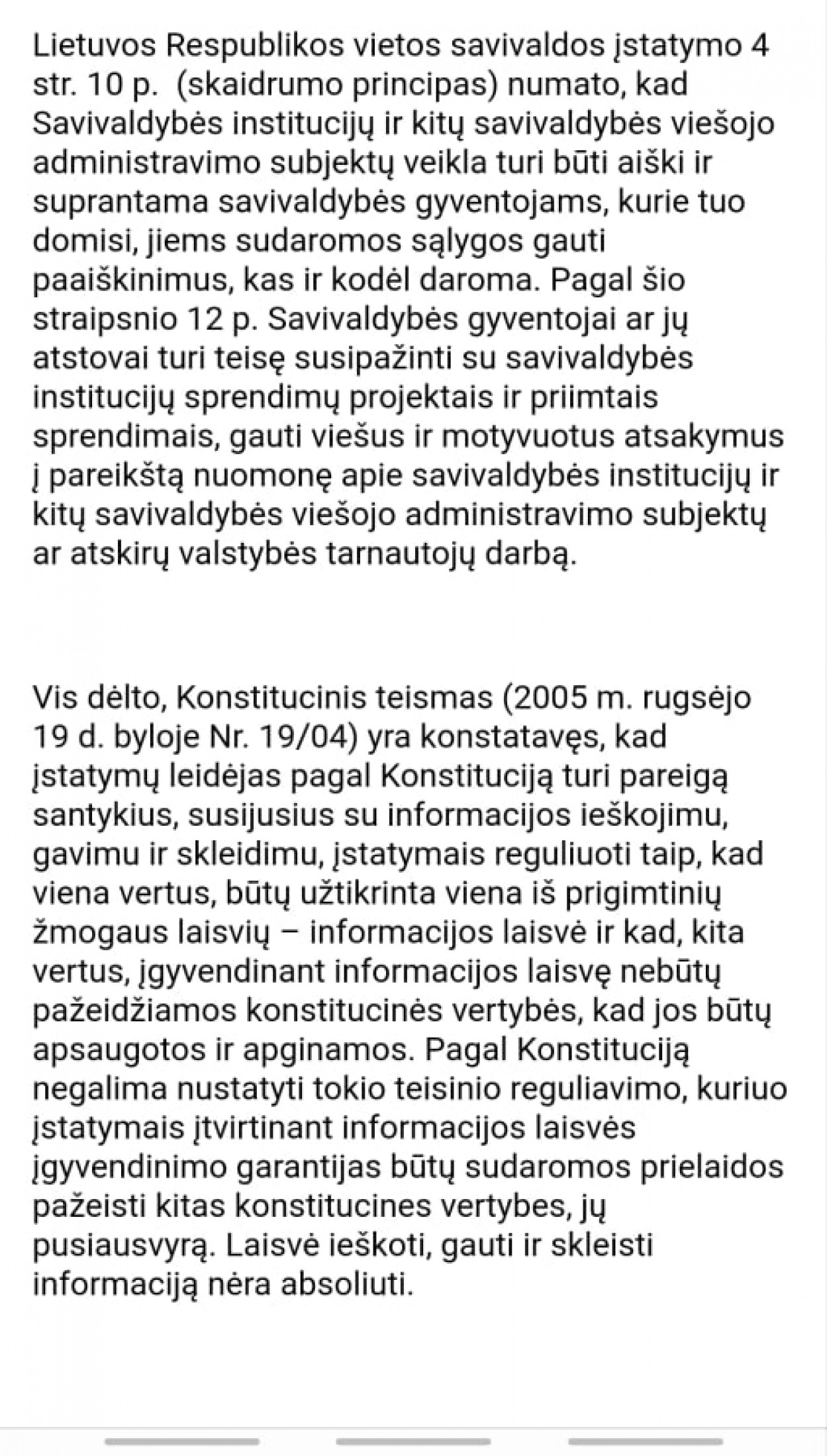 Kadangi atsakymas – ilgas, pateikiame tik esmę atspindinčią atsakymo iškarpą. Visą jį patalpiname nuotraukų galerijoje.