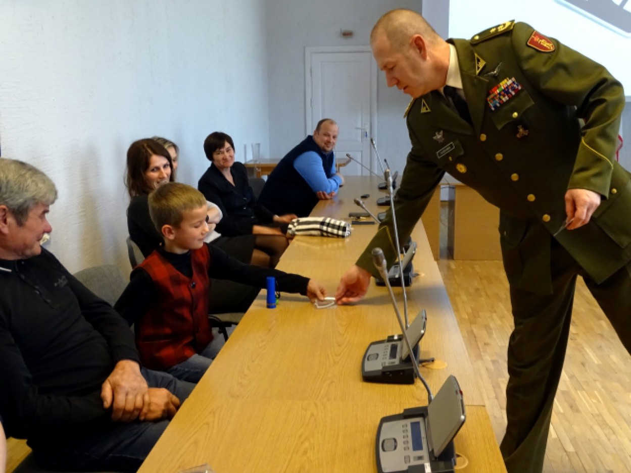 Į susitikimą su Lietuvos Kariuomenės Didžiojo Lietuvos Etmono Jonušo Radvilos mokomojo pulko vadu pulkininku leitenantu Aleksiejumi Gaiževskiu atvyko gausus Skuodo rajono gyventojų būrys, ypatingai karo tema susidomėję buvo rajono mokyklų mokiniai. Šis garbingo svečio apsilankymas ne vienam padėjo geriau suvokti mūsų valstybės gynybos principus, artimiau susipažinti su kario profesija, daugiau sužinoti apie savo pilietines pareigas ir prievoles.