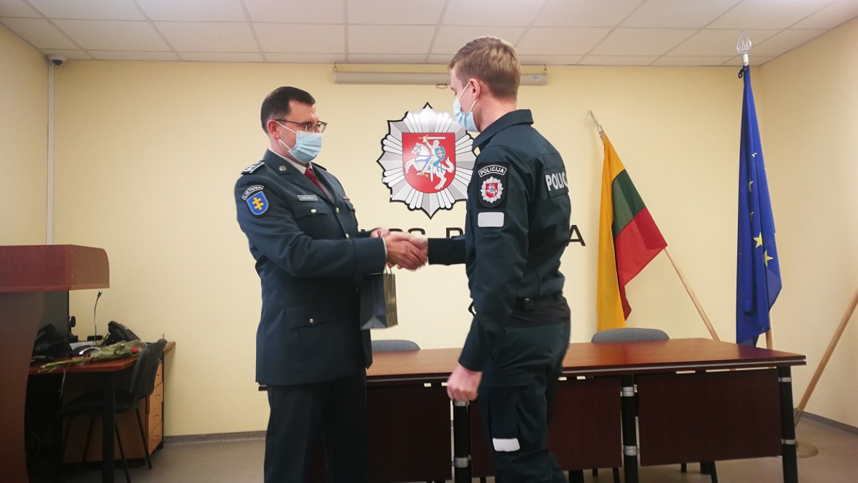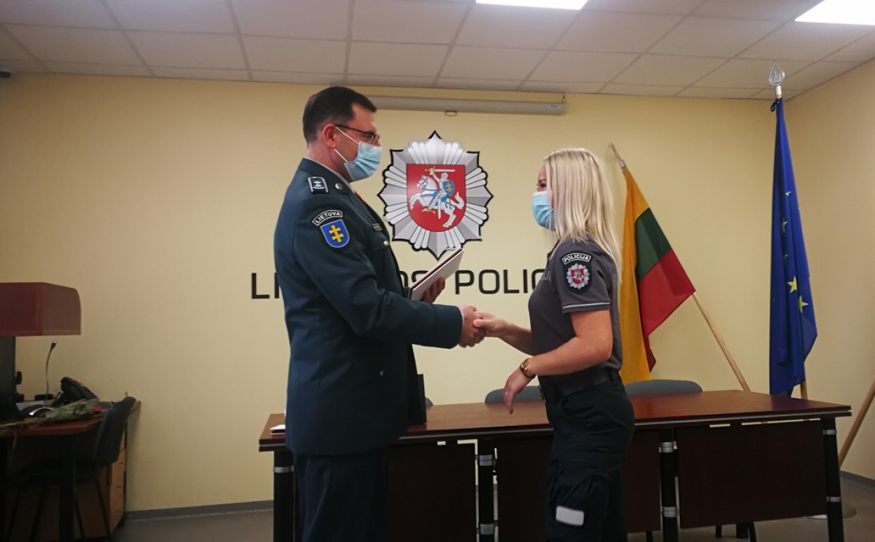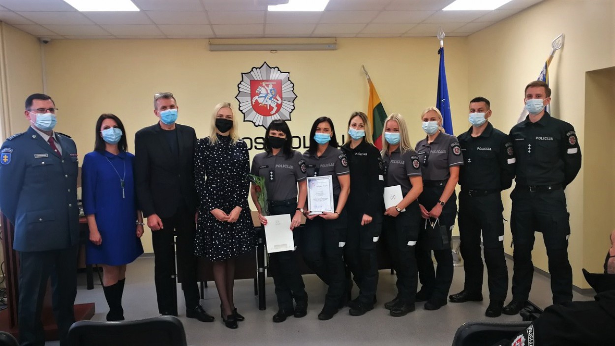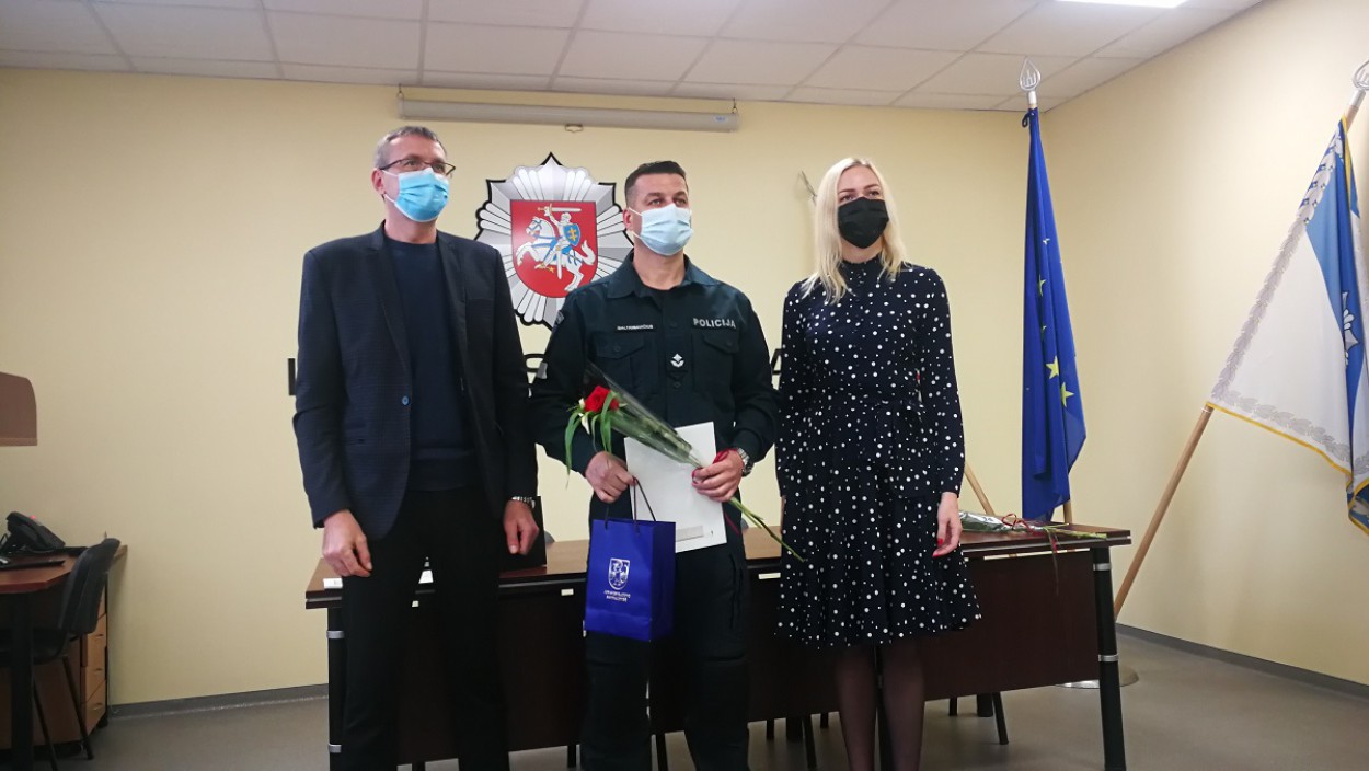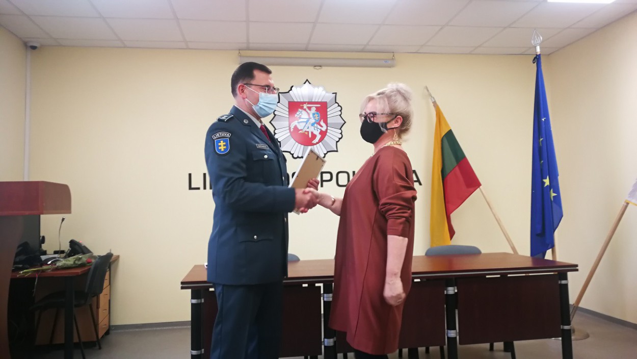 Vardinėmis dovanomis apdovanoti: Jonavos rajono policijos komisariato veiklos skyriaus vyresnysis tyrėjas komisaras inspektorius Justinas Sabatauskas ir Jonavos rajono policijos komisariato veiklos skyriaus vyresnioji tyrėja komisarė inspektorė Indrė Gudauskaitė.