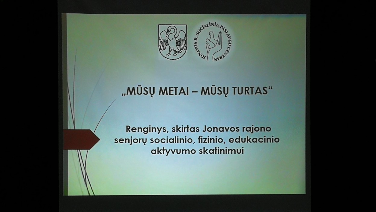 Dar 1990 metais, spalio pirmoji paskelbta Tarptautine pagyvenusių žmonių diena. Šią dieną skatinama atkreipti dėmesį į senėjimo problemas, pagyvenusių žmonių gyvenimo sąlygas, ugdyti jaunų žmonių pagarbą senyvo amžiaus žmonėms. Artėjant šiai dienai, Jonavos rajono savivaldybės Socialinių paslaugų centras siekė surengti kiek kitokią šventę rajono senjorams ir į ją pakvietė netik centro lankytojus, tačiau ir kitų partnerių, įstaigų senjorus. Šios dienos renginys „Mūsų metais – mūsų turtas“ skirtas paminėti netik artėjančią Tarptautinę pagyvenusių žmonių dieną, bet ir senjorų socialinio, fizinio, edukacinio aktyvumo skatinimui. Tos dienos renginyje senjorams skirtos pamokėlės bei užsiėmimai.