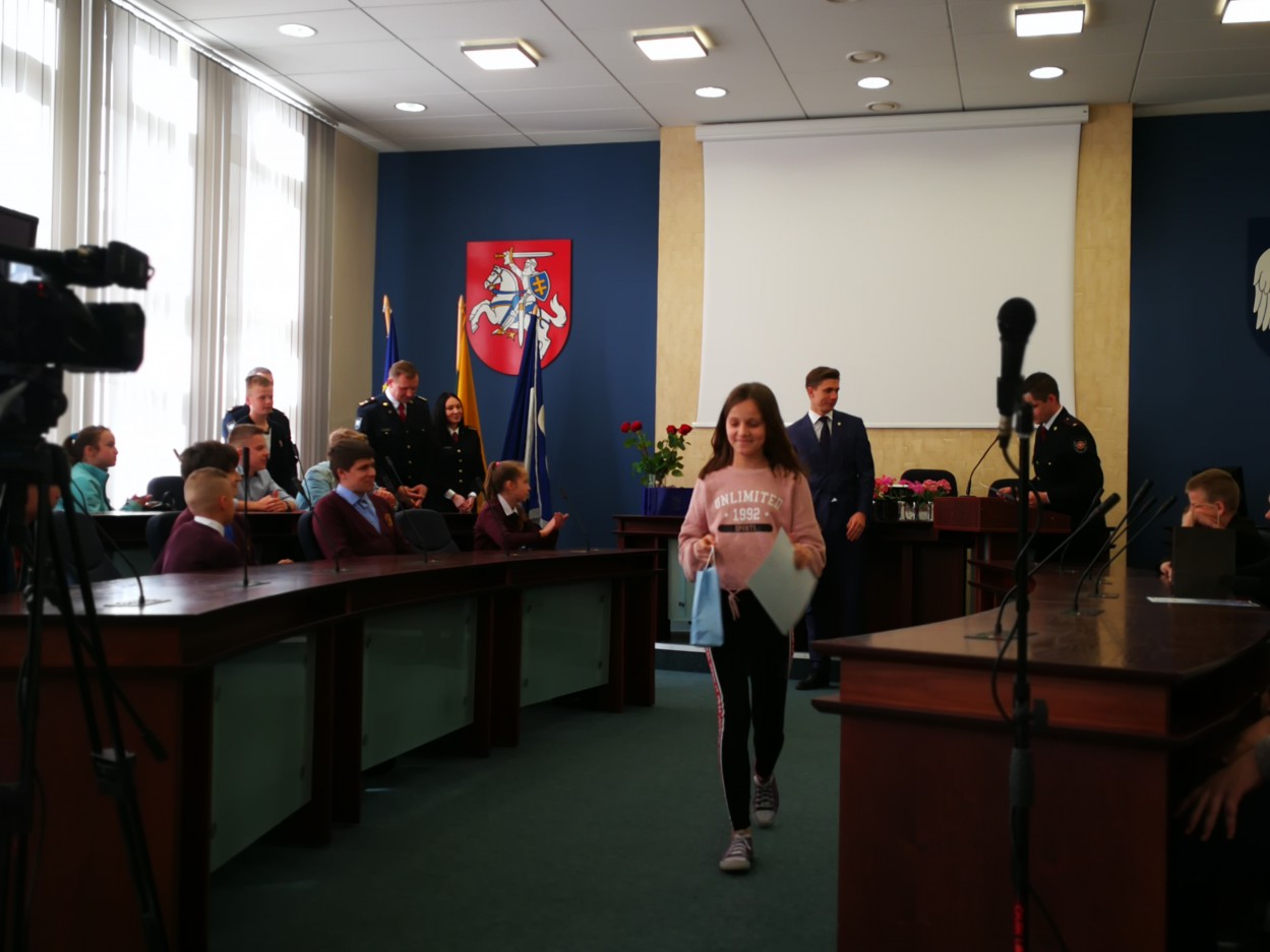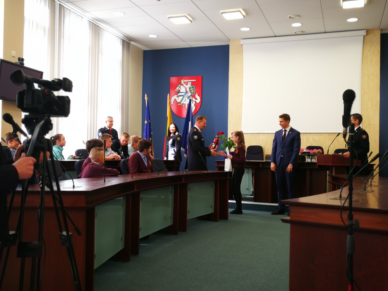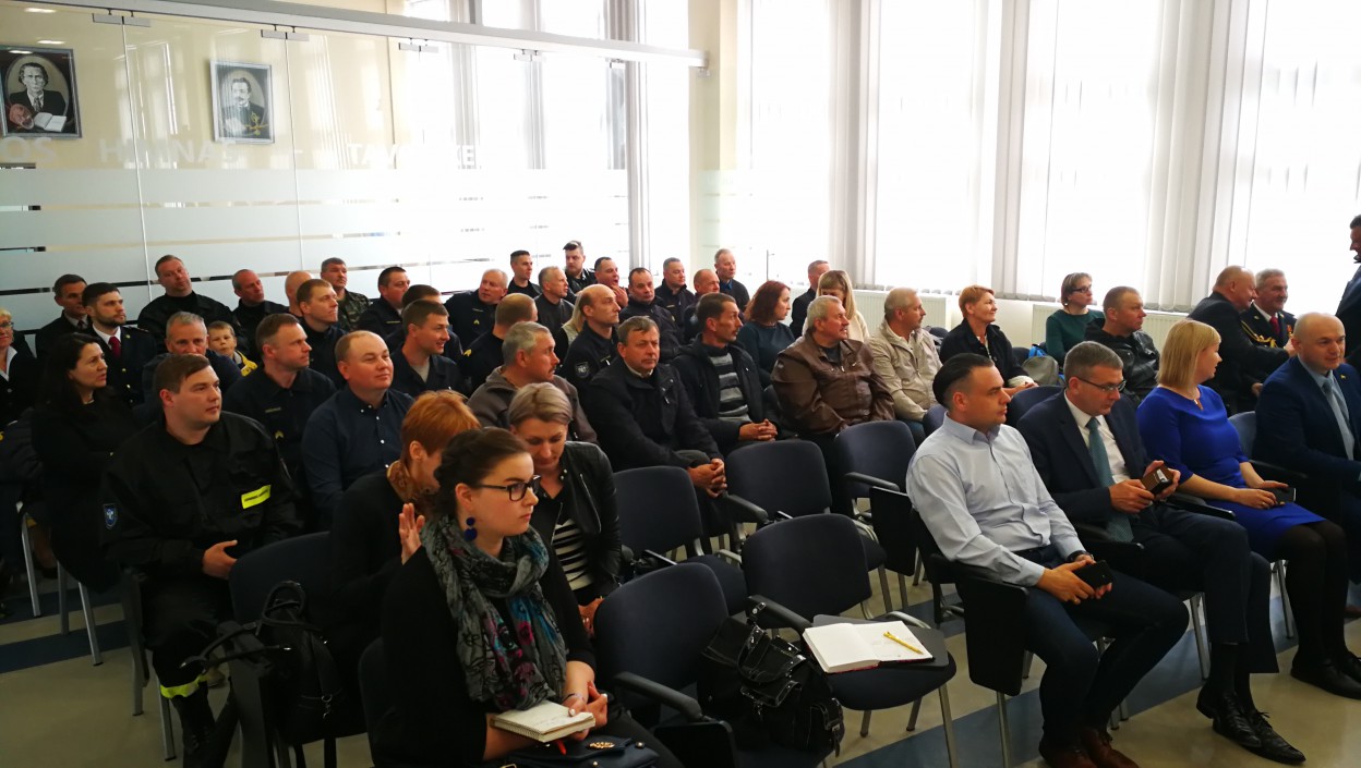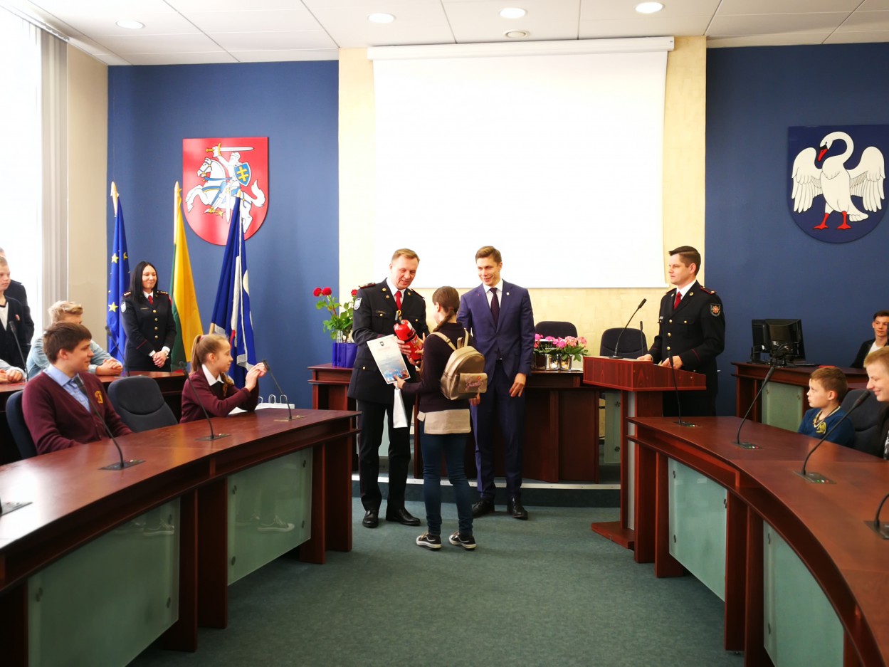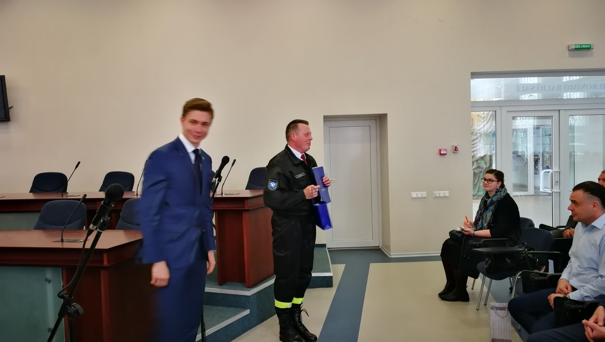 Pasibaigus mokinių konkursui – pagerbti ugniagesiai gelbėtojai.