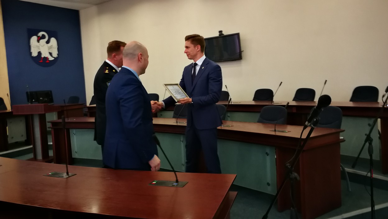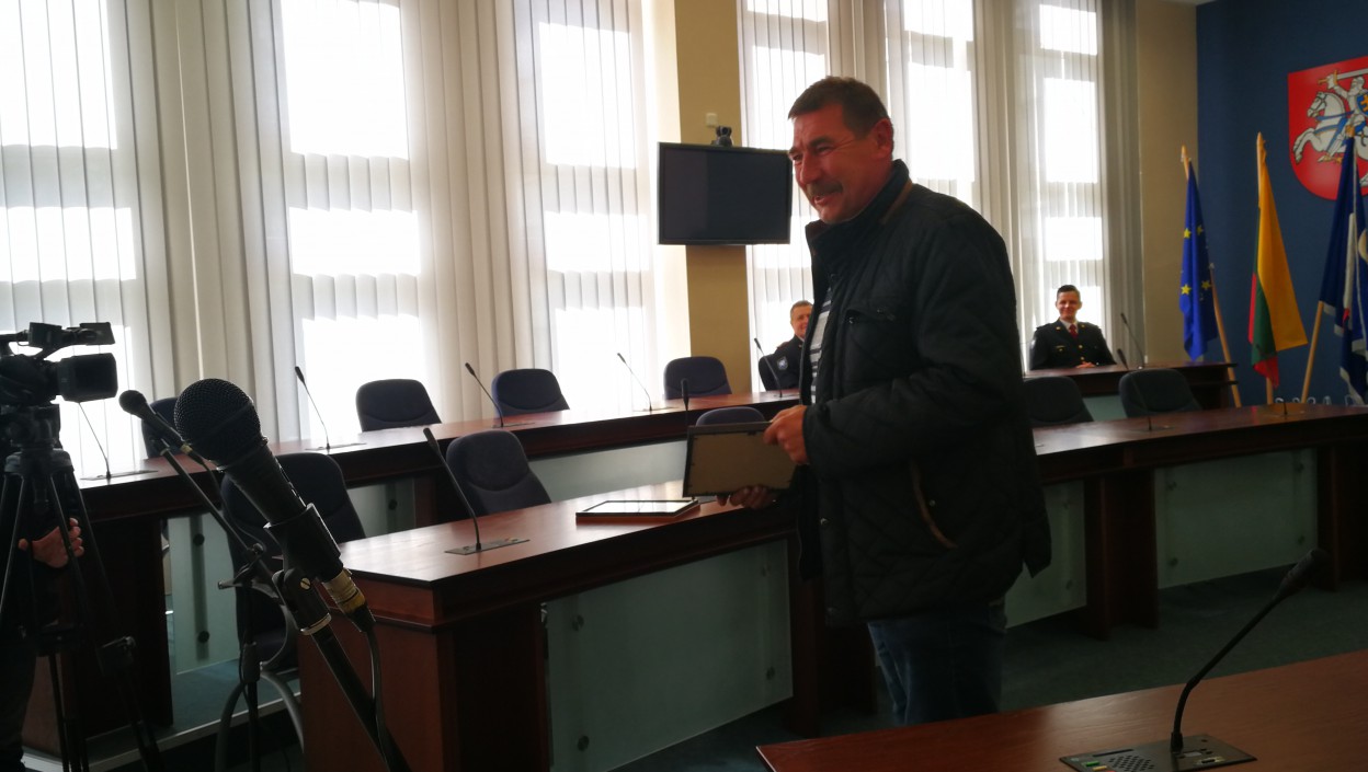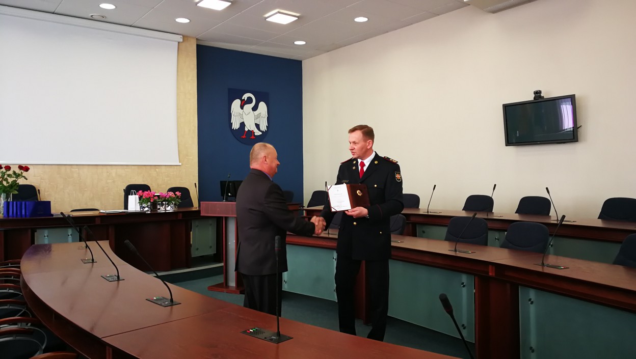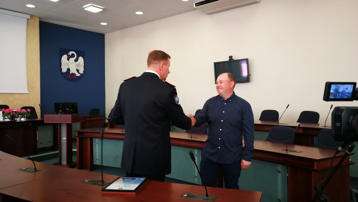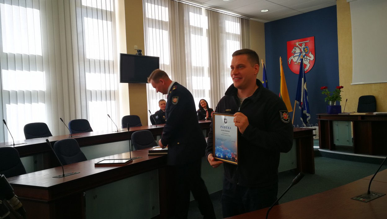 Valstybinės priešgaisrinės gelbėjimo tarnybos pasižymėjimo ženklu už nepriekaištingą 20 metų tarnybą, Ugniagesio gelbėtojo žvaigžde apdovanotas Jonavos rajono priešgaisrinės tarnybos viršininkas Vygaudas Čižauskas.