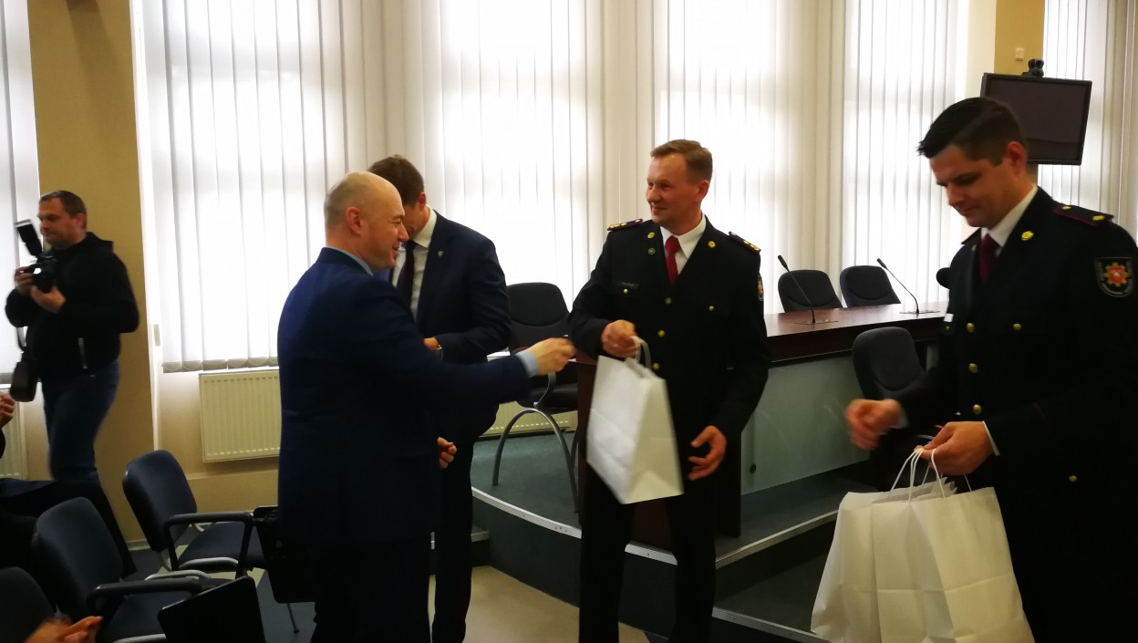Jonavos priešgaisrinės gelbėjimo tarnybos viršininko Sauliaus Kuliešiaus padėkomis apdovanoti Alvydas Smilgaitis, Rimas Skobas, Aivaras Chmeliauskas, Tomas Mikulskis, Valdas Koboris, Aurimas Ambraška, Edgaras Davalga, Žygimantas Vėlykis, Tomas Chomičius.