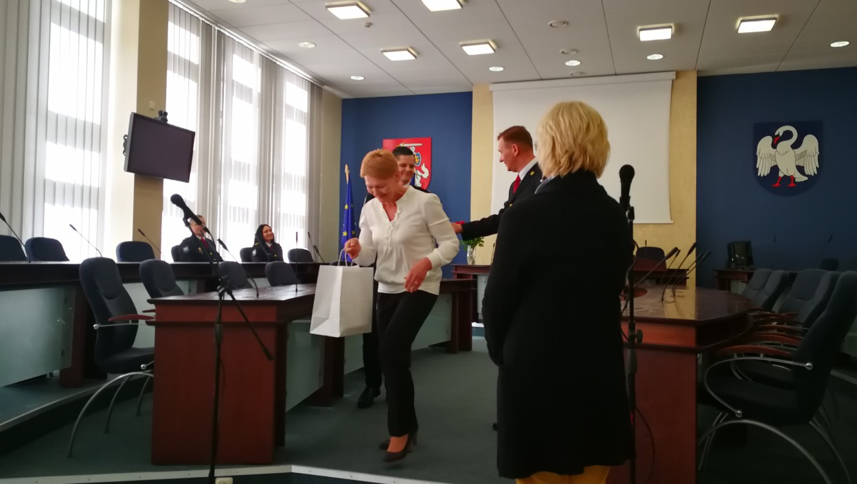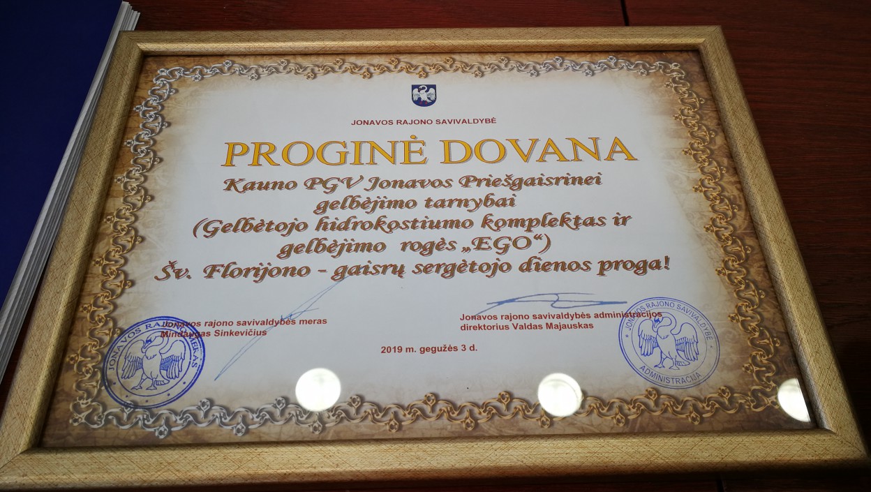 Jonavos rajono savivaldybės mero padėkos raštais už pavyzdingai atliekamas tarnybines pareigas apdovanoti Jonavos rajono priešgaisrinės tarnybos specialistė finansinei veiklai vykdyti Dainora Vaičiūnienė, Jonavos rajono priešgaisrinės tarnybos Kulvos ugniagesių komandos ugniagesys Gintautas Mačiulis, Jonavos rajono priešgaisrinės tarnybos Ruklos ugniagesių komandos ugniagesys Alvydas Kudelis.