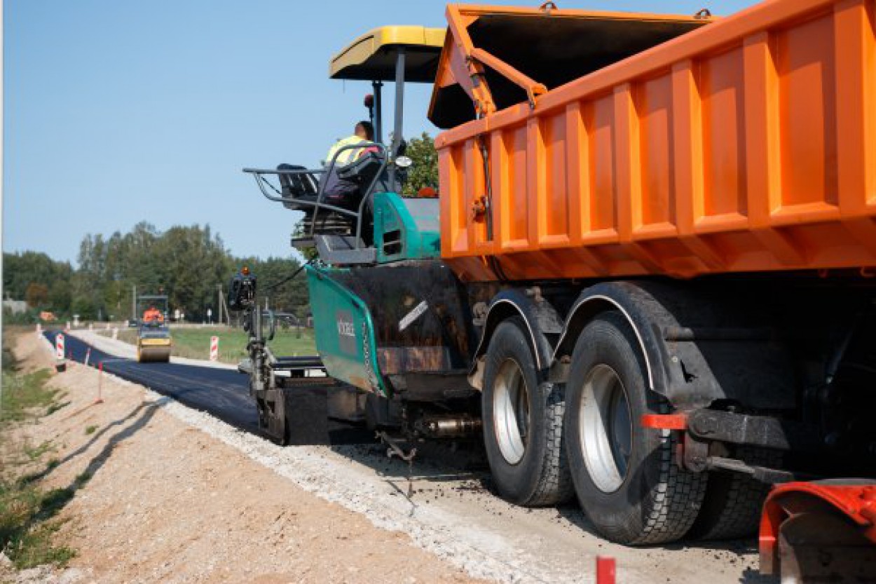 Asfaltavimo darbų metu kelyje ribojamas eismas.