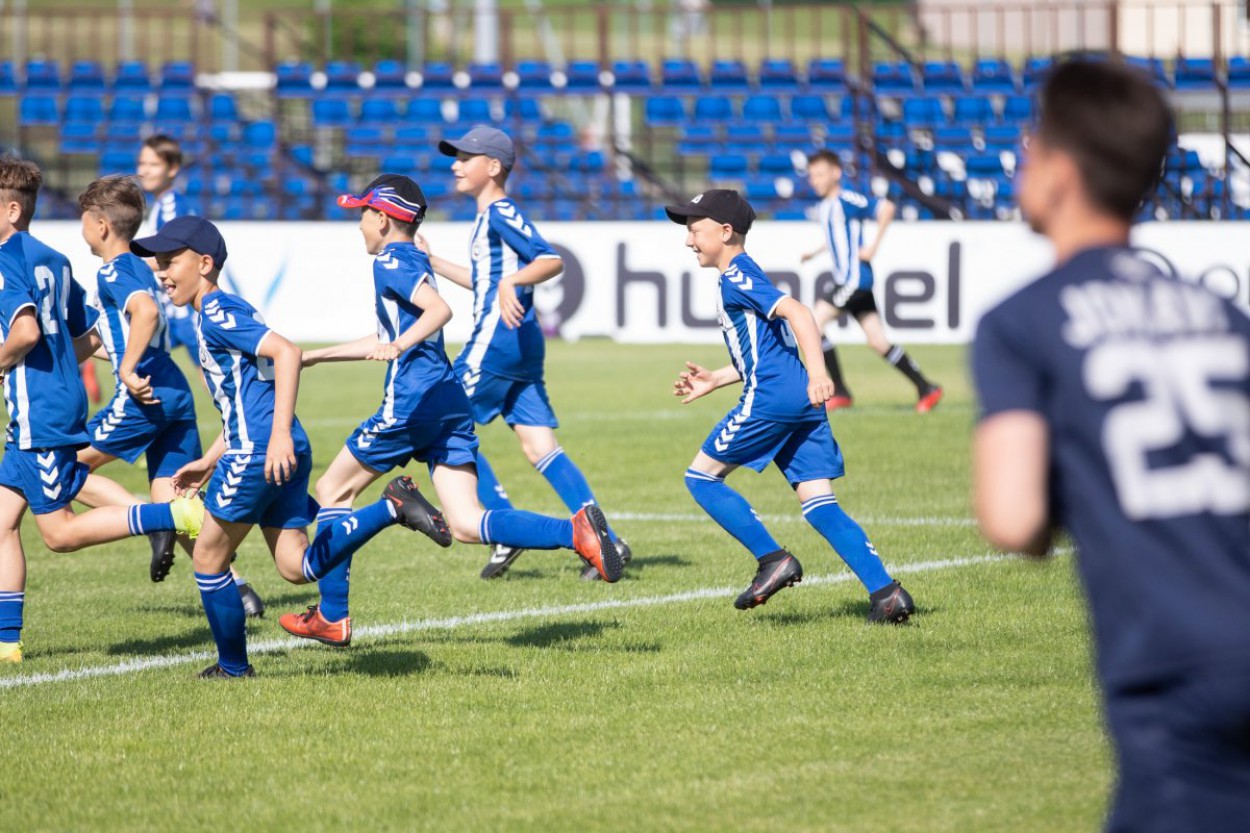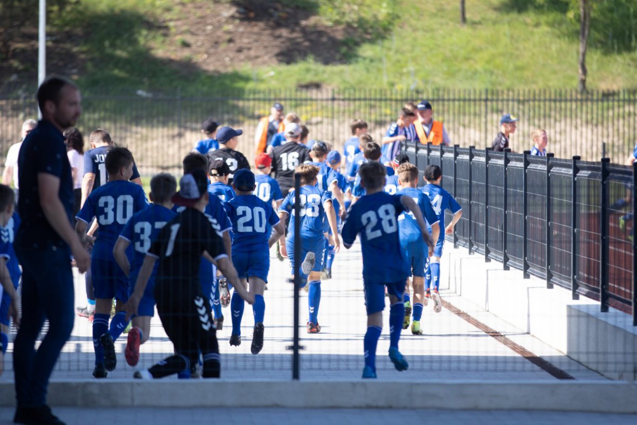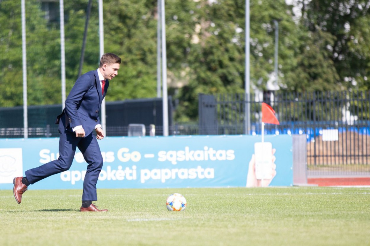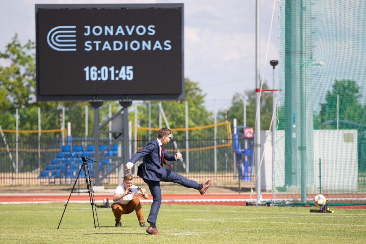 Jonavos meras ir renginio svečiai stadioną atidarė simboliniu pirmuoju smūgiu į vartus, po kurio į orą šovė fejerverkai. Netrukus aikštėje kamuolį jau gainiojo beveik šimtas jaunųjų Jonavos futbolininkų.