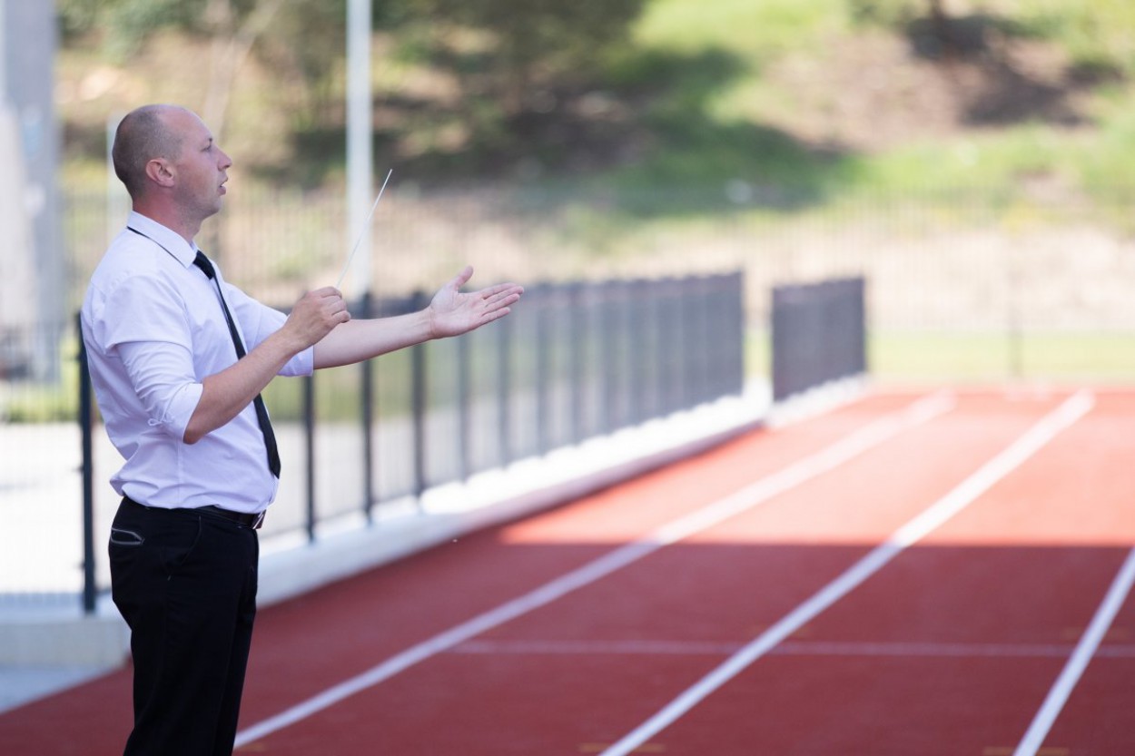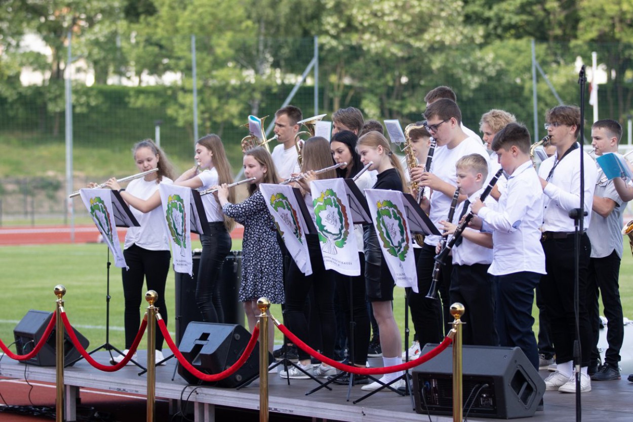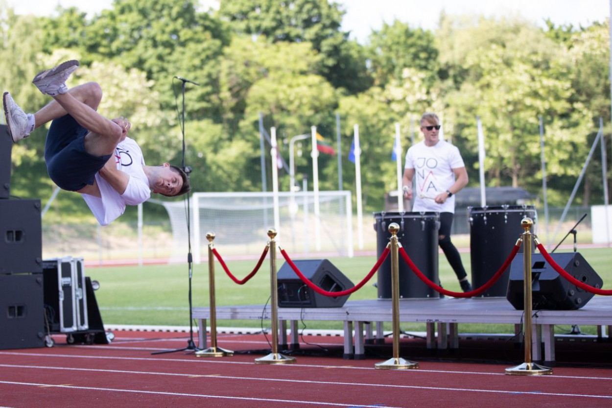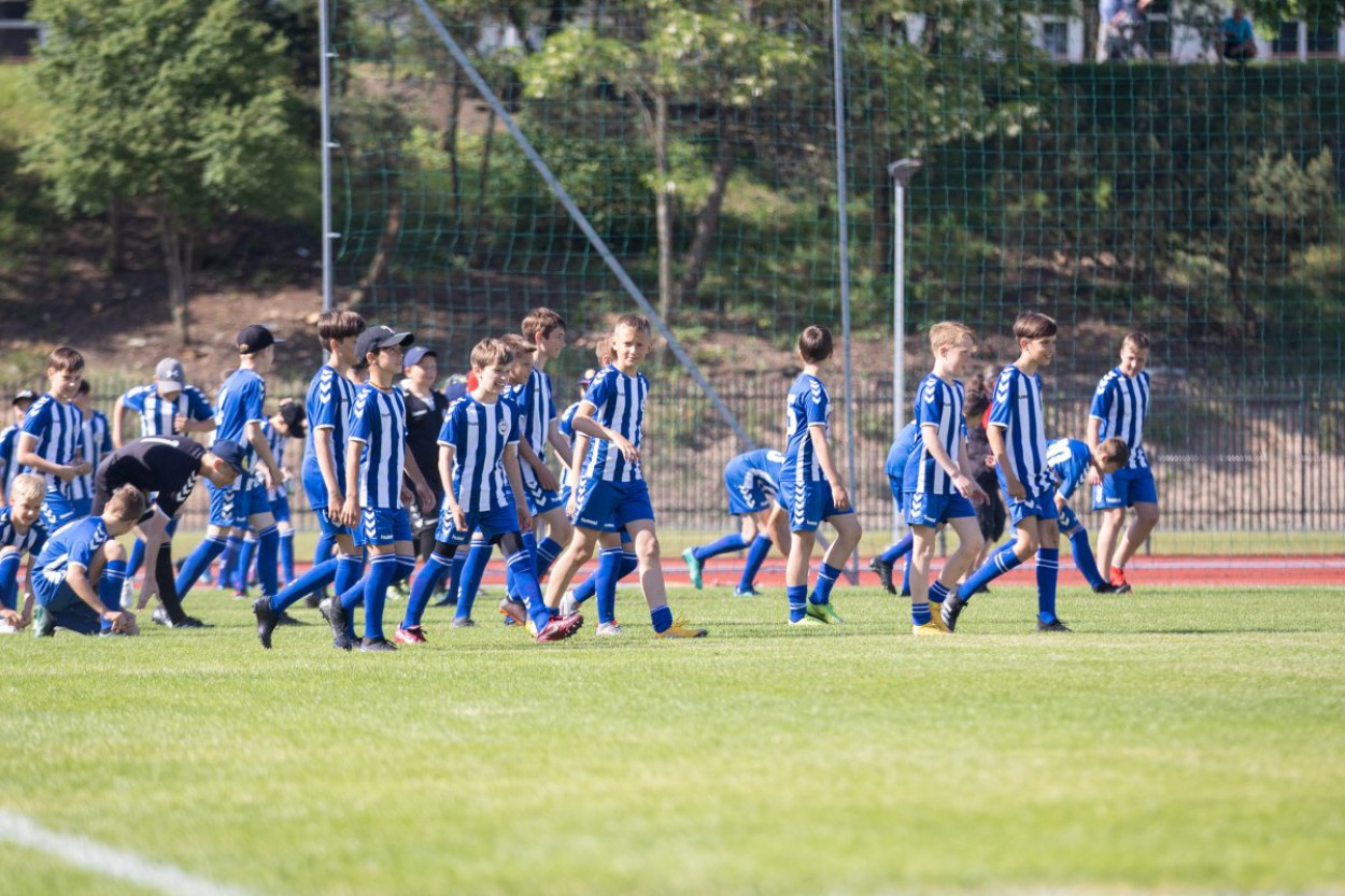 Jonavos meras ir renginio svečiai stadioną atidarė simboliniu pirmuoju smūgiu į vartus, po kurio į orą šovė fejerverkai. Netrukus aikštėje kamuolį jau gainiojo beveik šimtas jaunųjų Jonavos futbolininkų.