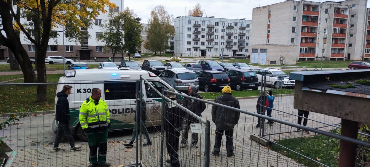 Gyventojai evakuoti, įvestas planas ,,Skydas", pareigūnai ir ugniagesiai gelbėtojai riboja patekimą prie namo, laukiami išminuotojai.