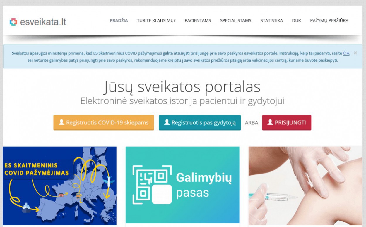 Pacientai ir sveikatos priežiūros specialistais nuo šiol gali naudotis atnaujinta ir patogesne E. sveikatos sistemos interneto svetaine. Atnaujintoje svetainėje pateikiama aktuali informacija, nuorodos prisijungti prie paciento, specialisto portalų ar registruotis vizitui pas gydytoją. Be to, naujojoje svetainėje įdiegtas įrankis, kuris leis realiuoju laiku stebėti visos sistemos darbą ir sąveikavimą su kitų įstaigų bei institucijų sistemomis.