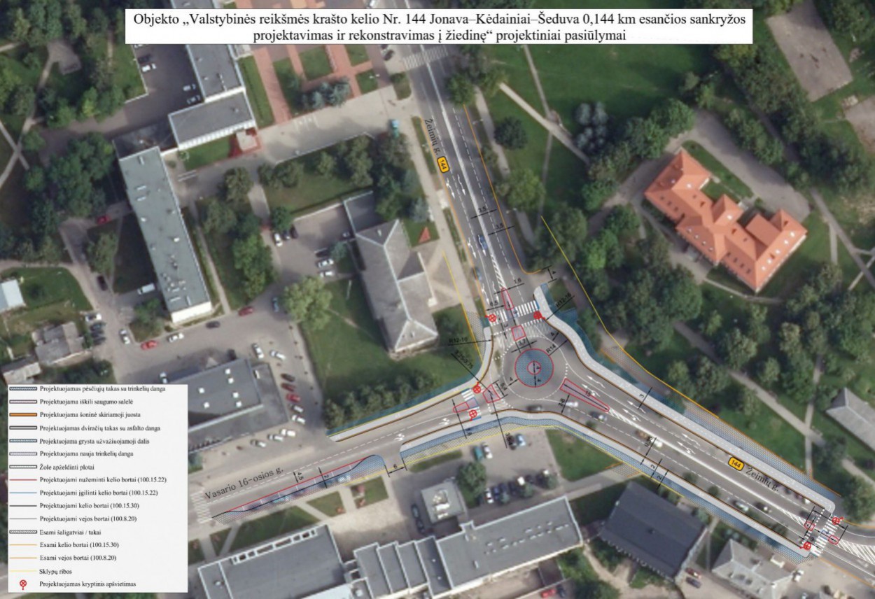 Eilę metų nagrinėjamas klausimas dėl žiedinės sankryžos įrengimo Vasario 16 –osios ir Žeimių gatvių sankryžoje ties meno mokykla (Valstybinės reikšmės krašto kelio Nr. 144 Jonava-Kėdainiai-Šeduva ruožas nuo 0,041 iki 0,191 km).