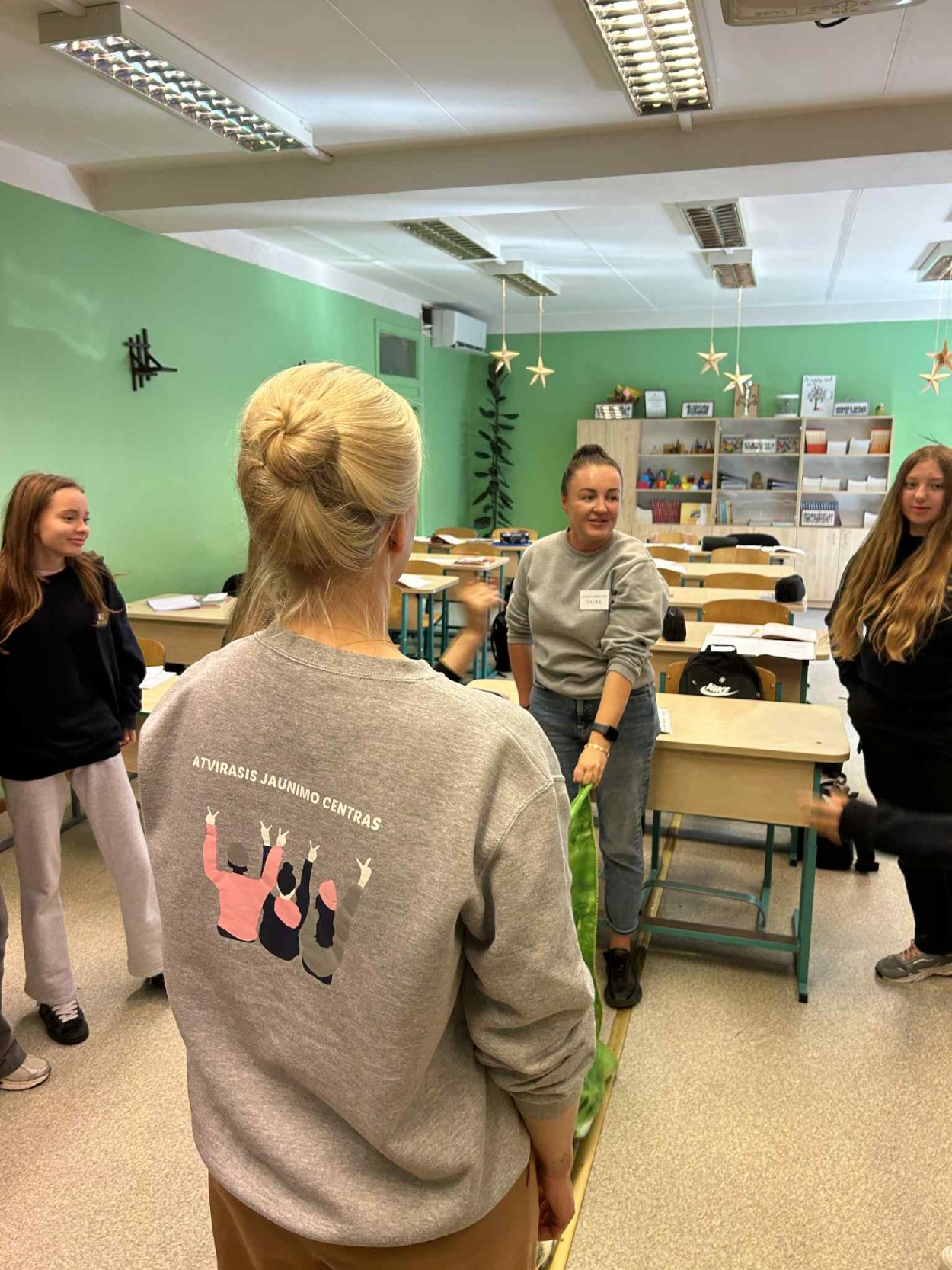 b) darbas su jaunimo grupėmis, dirbsime su viena pasirinkta klase individualiai, numatome pasirinkti klasę, kuri patiria daugiau iššūkių;