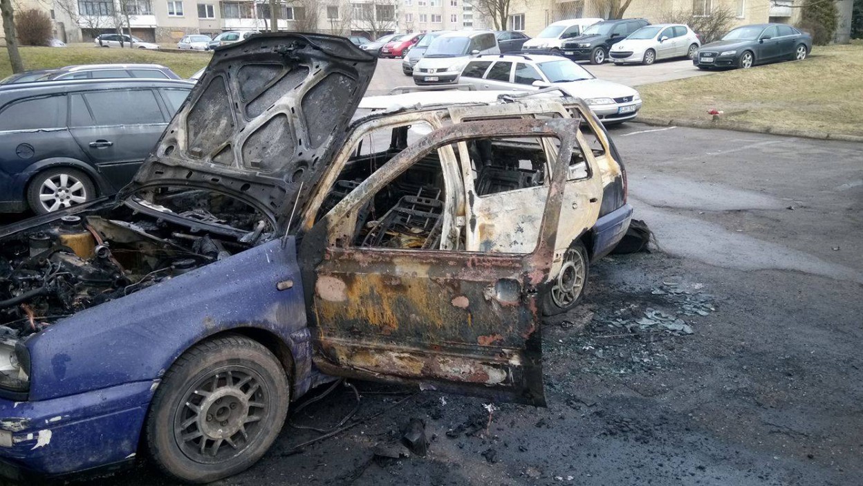 Pirminiais duomenimis, automobilis „Volkswagen Golf“ nebuvo padegtas – gaisro priežastis galėjo būti gedimas elektros instaliacijoje.