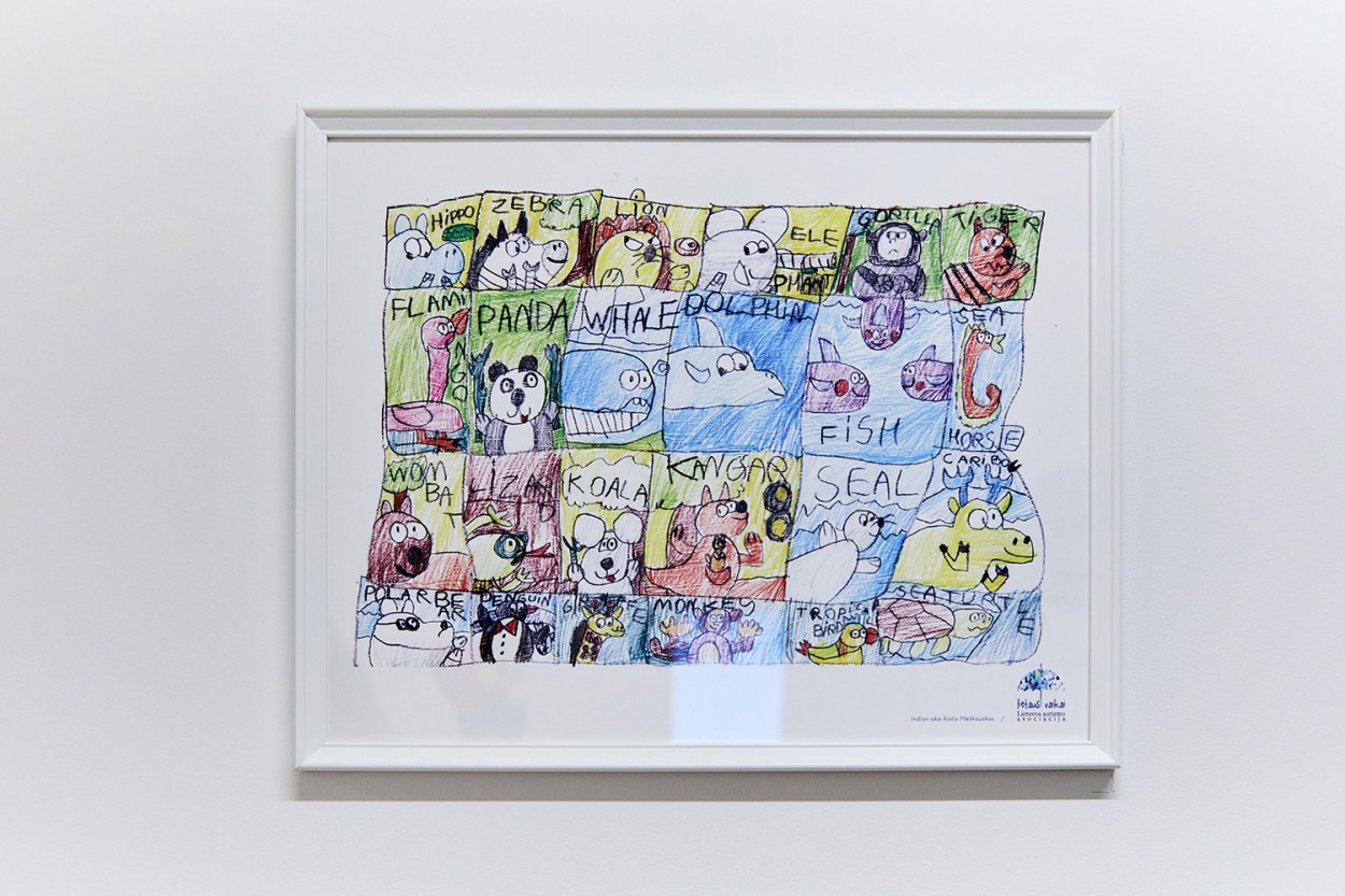 Nuotraukose Aisčio piešiniai, kai jam buvo 9 metai – jie eksponuojami Santaros klinikų Vaiko raidos centre.