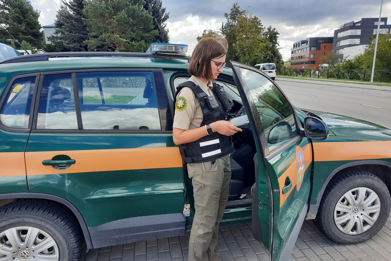 Departamento pareigūnai sustabdę transporto priemonę dėl taršos kontrolės, netikrins joje esančių vairuotojo daiktų. Tik turint pagrįstų įtarimų, kad tikrinamame automobilyje esantys daiktai yra susiję su nelegalia medžiokle, žvejyba ir pan., pareigūnai turi teisę daiktus patikrinti.