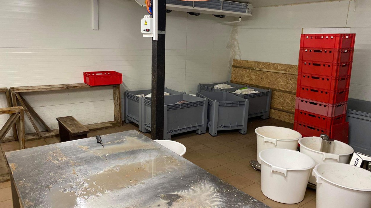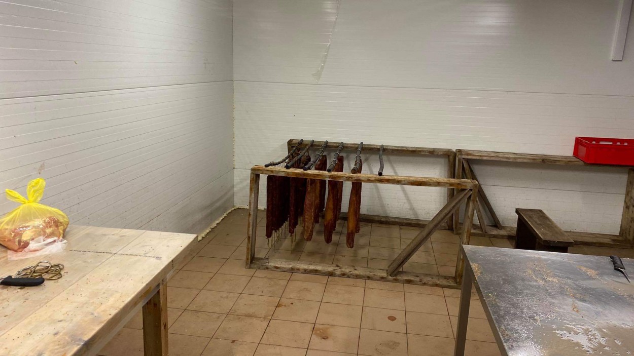 Netoliese esančiame kitame pastate taip pat buvo rastos mėsos perdirbimui įrengtos patalpos, su mėsos pakavimo ir svėrimo įrenginiais. Be to, rasta ir apie 1800 kg mėsos, kurios įsigijimo dokumentų pateikti pareigūnams vyras negalėjo. Pirminiais duomenimis leidimo verstis tokia veikla vyras neturi. Apie šį radinį policijos pareigūnai informavo Valstybinės maisto ir veterinarijos tarnybos atstovus, kurie atvykę surašė patikrinimo aktą ir toliau patys priims procesinius sprendimus dėl šios galimai neteisėtos veikos.