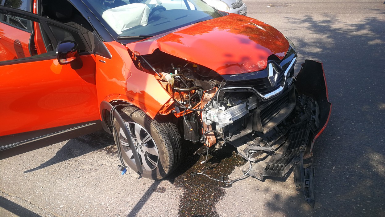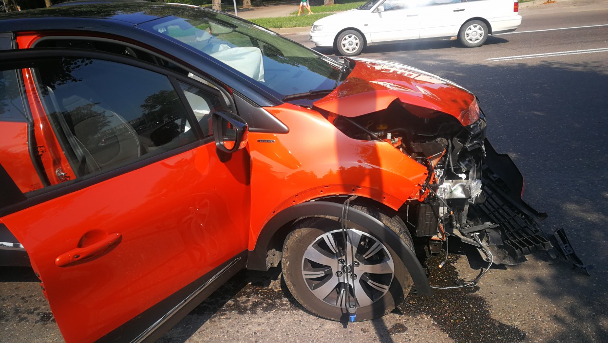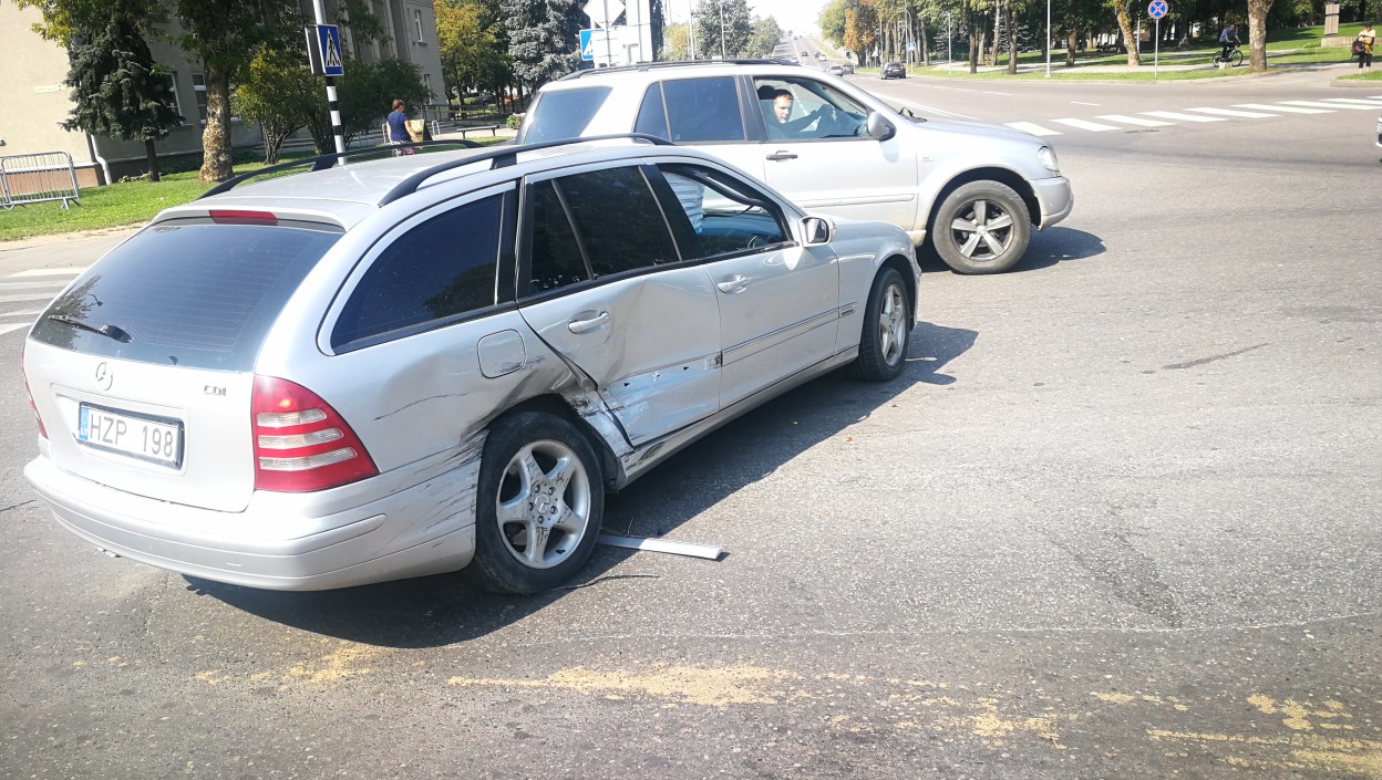Automobilio Renault Captur (2017 m. gamybos), važiavusio pagrindiniu keliu, nepraleido Mercedes automobilis, ko pasekoje sugadintos abi transporto priemonės. Mercedes automobiliui įlenktos šoninės durelės, sugadinta važiuoklė. O štai Renault automobilis „prarado“ visą priekį.