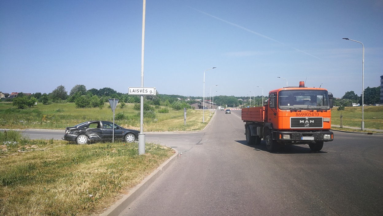 Apie 12 val. Audi vairuotojas norėdamas išvažiuoti iš A.Kulviečio gatvės į P.Vaičiūno gatvę, nesutelkė dėmesio ir nepraleido pagrindiniu keliu važiavusio MAN sunkvežimio, kuris ir atsitrenkė į dešinį lengvojo automobilio šoną.