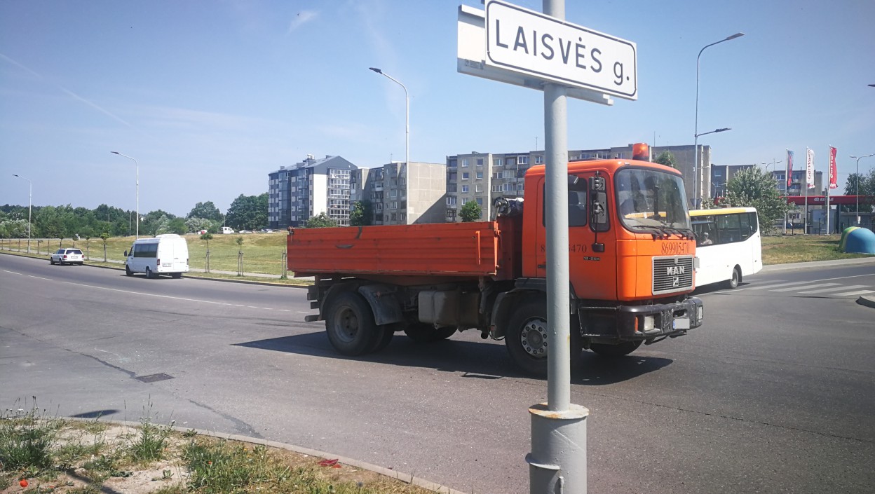 Sunkvežimio MAN vairuotojas tikino, kad važiavo leistinu greičiu, ir tikrai nestovėjo kelyje, kaip kad pasirodė kitam vairuotojui.
