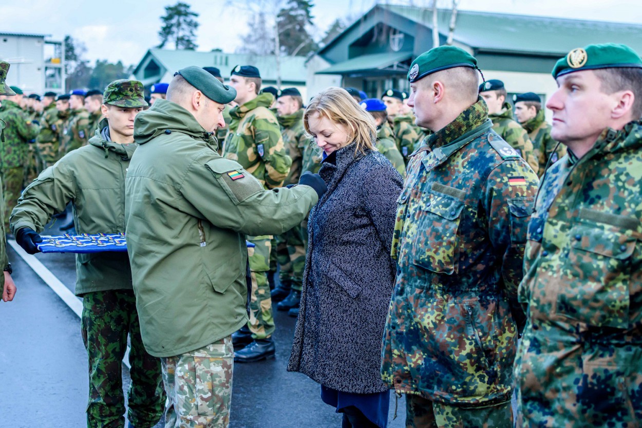 Sveikindamas karius plk. M. Petkevičius pabrėžė, kad NATO Priešakinių pajėgų grupė atlieka didelį vaidmenį atgrasant potencialius agresorius, o dabartinės NATO Priešakinių pajėgų kovinės grupės rotacijos vadas plk. ltn. Rouvenas Habelis (Vokietijos 391-ojo mechanizuotojo pėstininkų bataliono vadas) visomis jo vadovaujamų kontingentų kalbomis tarė „Ačiū“, taip padėkodamas už nepriekaištingą tarnybą, atsidavimą ir pasiektus aukštus rezultatus.