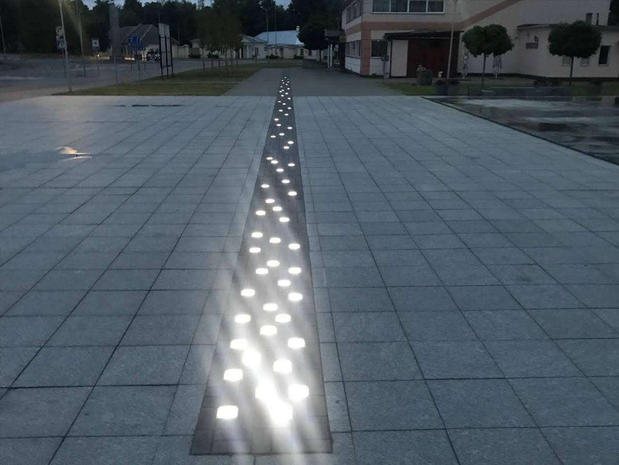 Jonavos Sąjūdžio aikštėje atnaujintas šviesos takas – stiklą pakeitė juodos trinkelės. Tarp paprastų trinkelių, siekiant išlaikyti šviesos tako idėją, sudėta ir apie šimtas šviečiančių trinkelių.