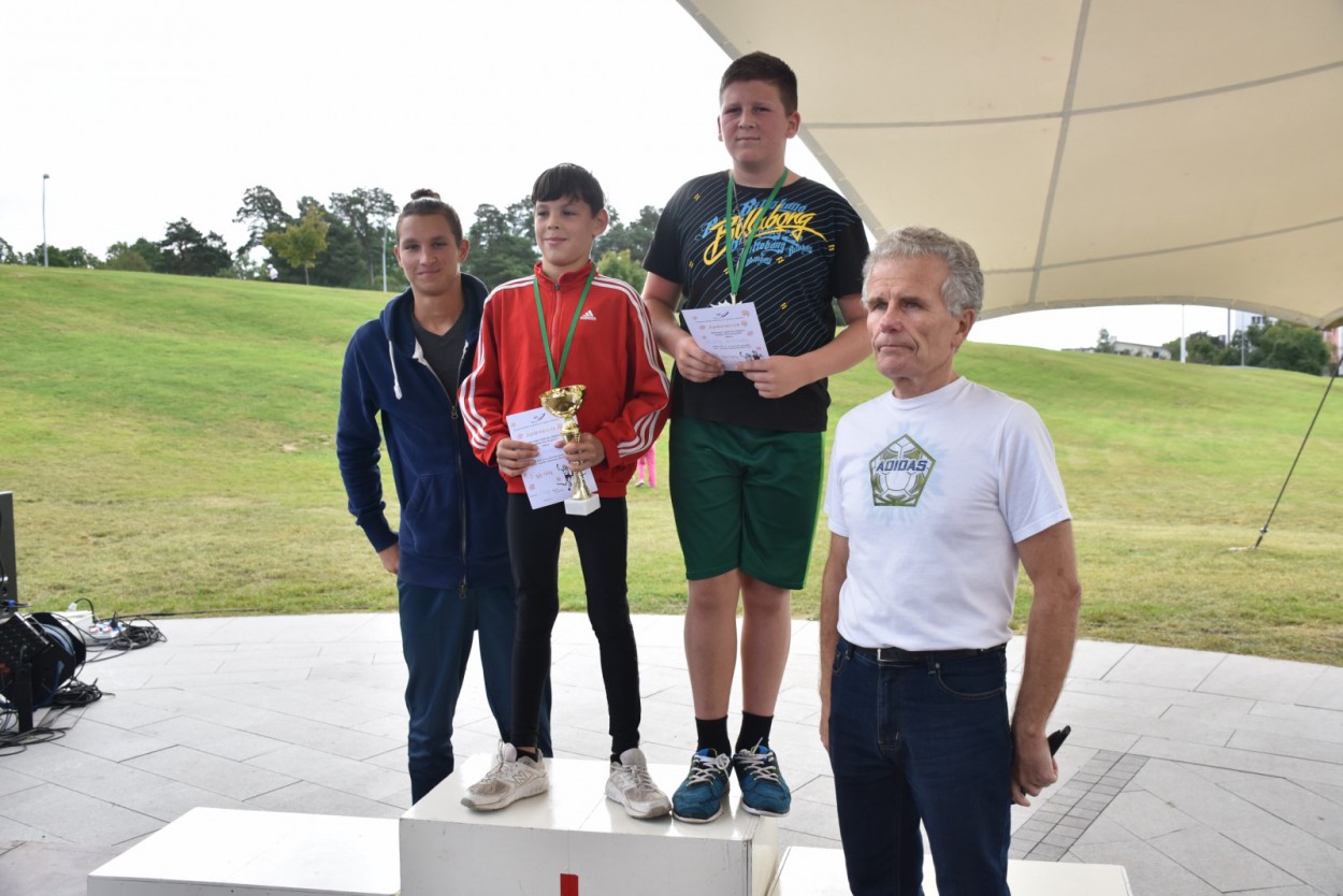 Ne ką prasčiau pasirodė ir Jonavos jaunieji bėgikai, nors ir į priekį praleidę Vievio atstovą Arną Bliujų (0:10.00), pasidalinę dvi prizines vietas. Ant antrosios vietos prizininkų laiptelio lipo VšĮ "Bėgimo klubo" sportininkas Arminas Pšitulskis (0:10.01), o trečias finišavo sporto centro auklėtinis Mantas Gezevičius (0:10.21).