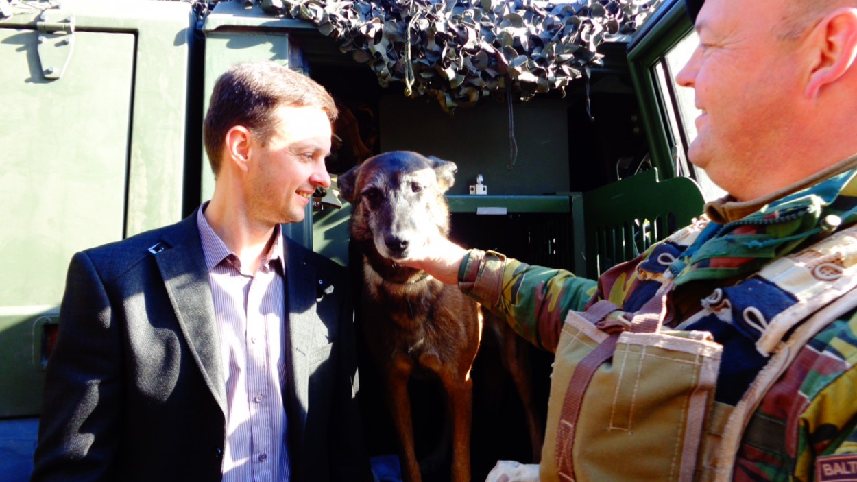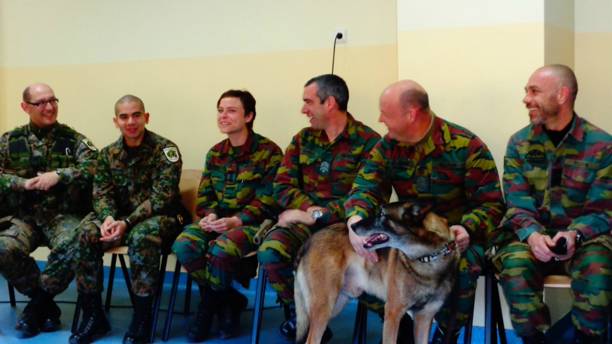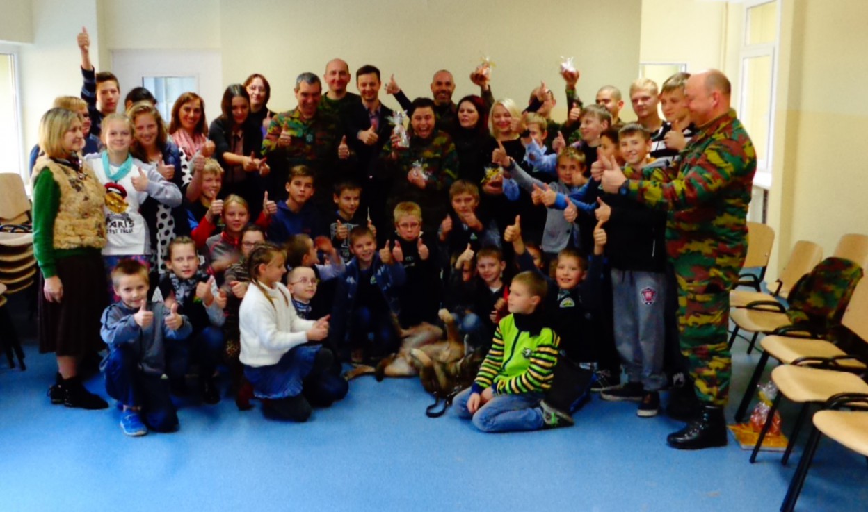 Spalio 15 d. po pietų į mokyklos aikštelę įvažiavo Belgijos pėstininkų kovos mašina „Piranija – 1“, Liuksemburgo žvalgų mašina „Dingo -2“ kartu su kariais iš Belgijos ir Liuksemburgo. Komandoje buvo snaiperis, daktarė ir išminuotojų komanda su šunimis Deriu ir Heriu, kurie yra išmokyti profesionaliai ieškoti minų.