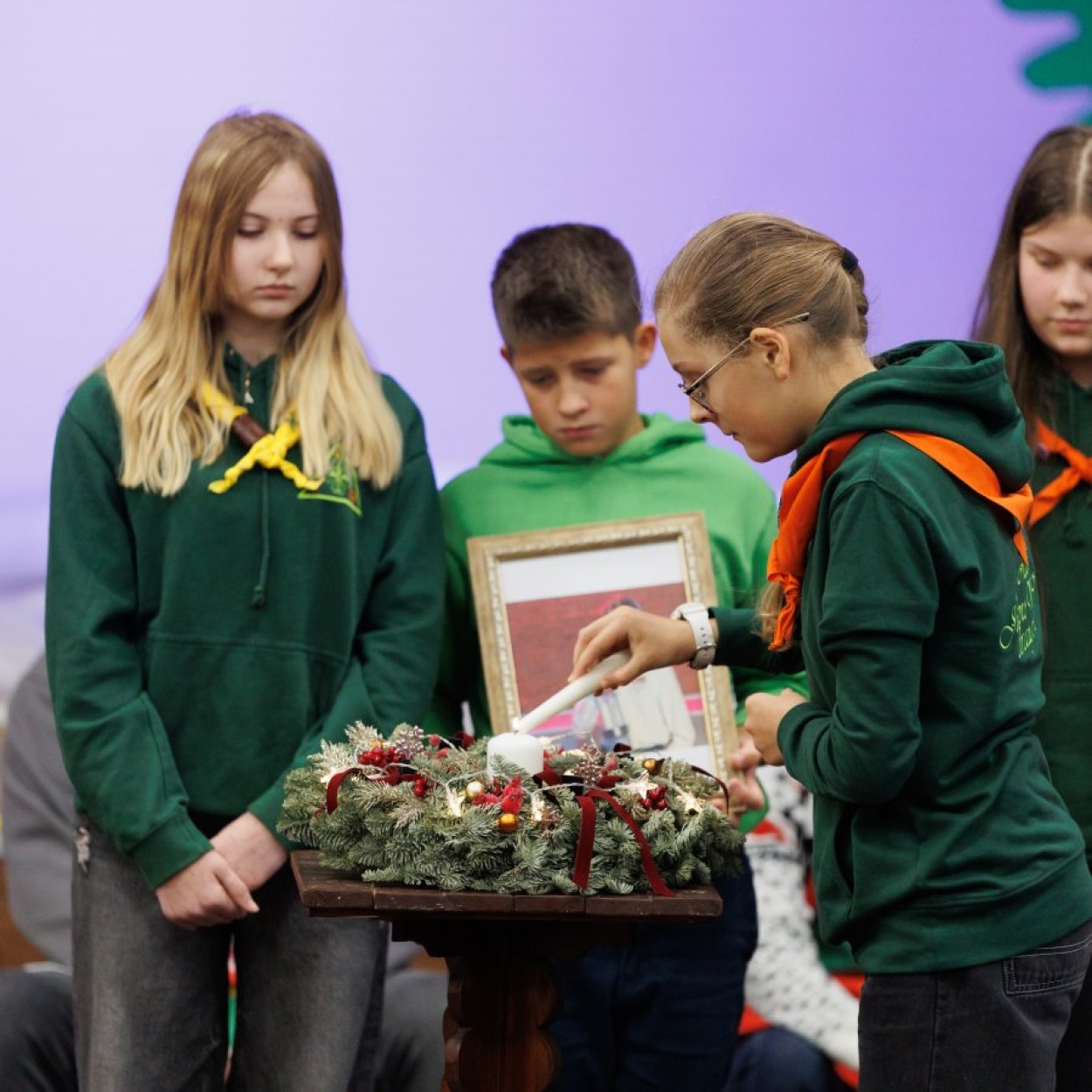 Renginio metu Justino Vareikio progimnazijos skautai, tęsdami gražią tradiciją, bendrijai „Viltis“ perdavė Betliejaus ugnį.