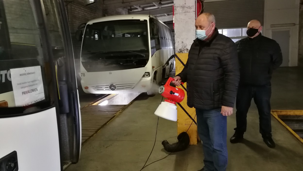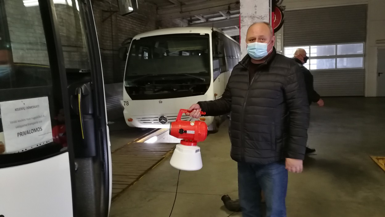 „Mūsų bendrovės autobusai ir patalpos nuo vasario mėnesio dezinfekuojami standartiniu būdu, t.y., alkoholio pagrindu sukurtais dezinfekciniais skysčiais. Tačiau matant, kad Lietuvoje, ir tuo pačiu Jonavoje, epidemiologinė situacija blogėja, todėl priėmėme sprendimą dezinfekciją suintensyvinti dar labiau. Įsigijom naują prietaisą – rūko generatorių. Į jį pilamas Europoje sertifikuotas dezinfekcinis skystis, naudojamas net ir maisto pramonėje, kuris naikina praktiškai visus virusus, bakterijas ir netgi pelėsius.