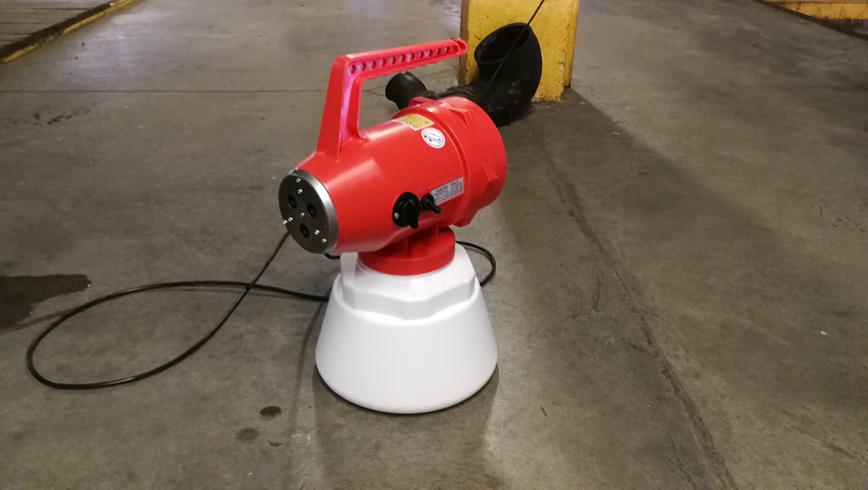 Bendrovė „Jonavos autobusai“ demonstruoja įsigytą naują įrenginį, kurio pagalba, viešo transporto bei kitų patalpų dezinfekavimo darbai bus vykdomi dar efektyviau.