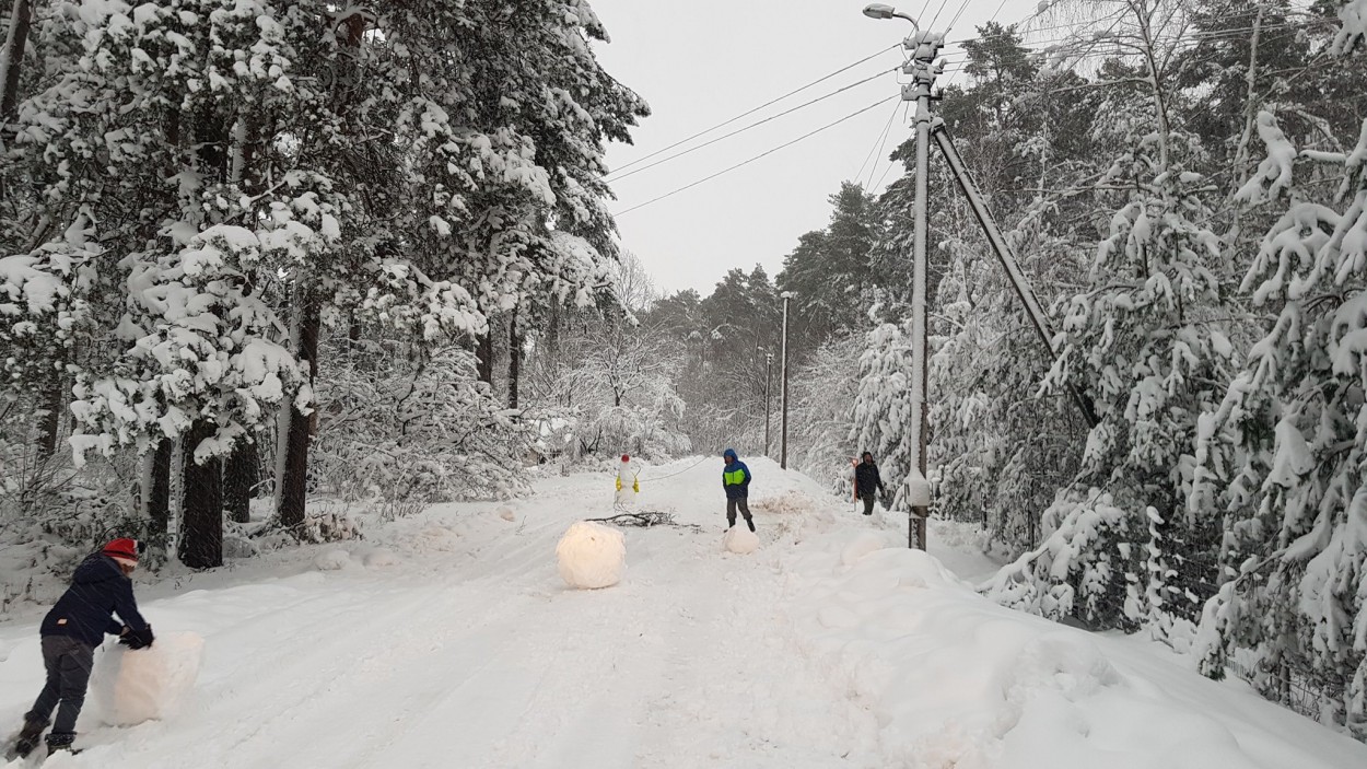 Nukritusį laidą pamačiau naktį, iškart informavau ESO. Paryčiais galvojome, kaip pažymėti, kad neįvyktų kokia nelaimė ir sugalvojome, kad sniego seniai būtų puiki mintis - dideli, iš toliau matomi... Galima ir rankas padaryti, ir veidą (aut. past. šypsosi).