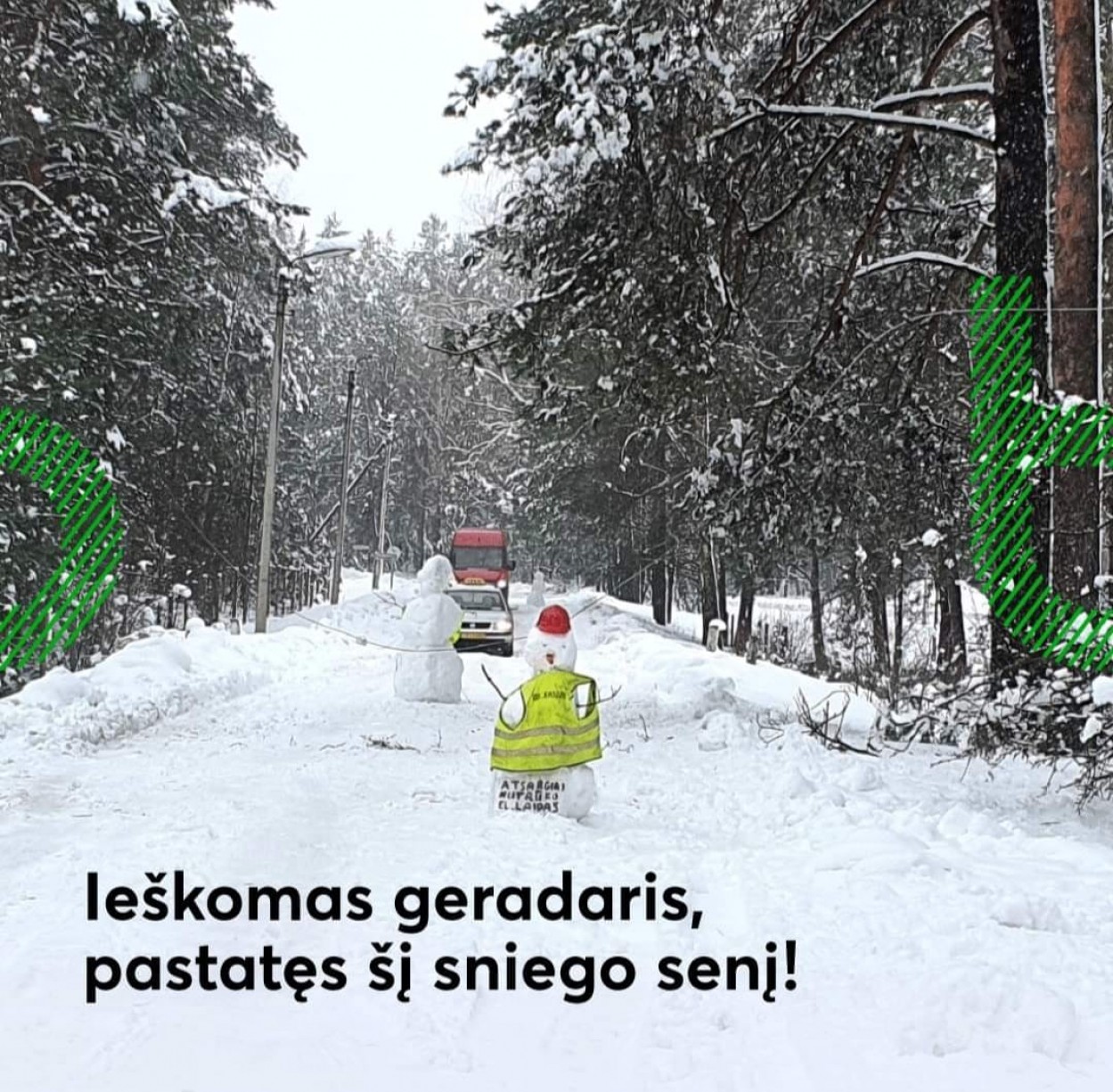 ,,Ieškome, kas Jonavos rajone pastatė sniego senius-gelbėtojus! (...) Šiomis dienomis, kuomet Lietuvą ištiko didžiulis snygis, BITĖS kolega keliavo pro Šveicarijos kaimo miškus Jonavos rajone. Ant kelio jis pamatė netikėtą reginį – sniego senius-gelbėtojus.