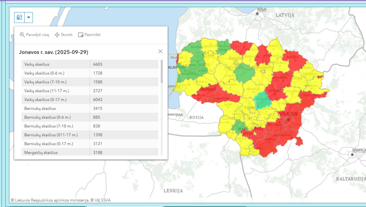 Daugiausiai profilaktiškai pasitikrinusių sveikatą vaikų (0–17 m.) iki spalio 1 d. buvo Kėdainių r. (98,28 proc.), Radviliškio r. (98,07 proc.), Rietavo (98,06 proc.), Skuodo r. (98,05 proc.) ir Kupiškio r. (97,9 proc.), savivaldybėse. (Jonavos r. sav. iš viso pateikta pažymėjimų 90,35%. Vaikų (0-17 m.) sk.: 6043). Mokinių, kurie atliko dantų patikrą, rugsėjo mėn. daugiausiai buvo Skuodo r. (95,61 proc.), Akmenės r. (93,24 proc.), Rietavo (93,3 proc.), Klaipėdos r. (91,82 proc.) ir Plungės r. (91,76 proc.) savivaldybėse.