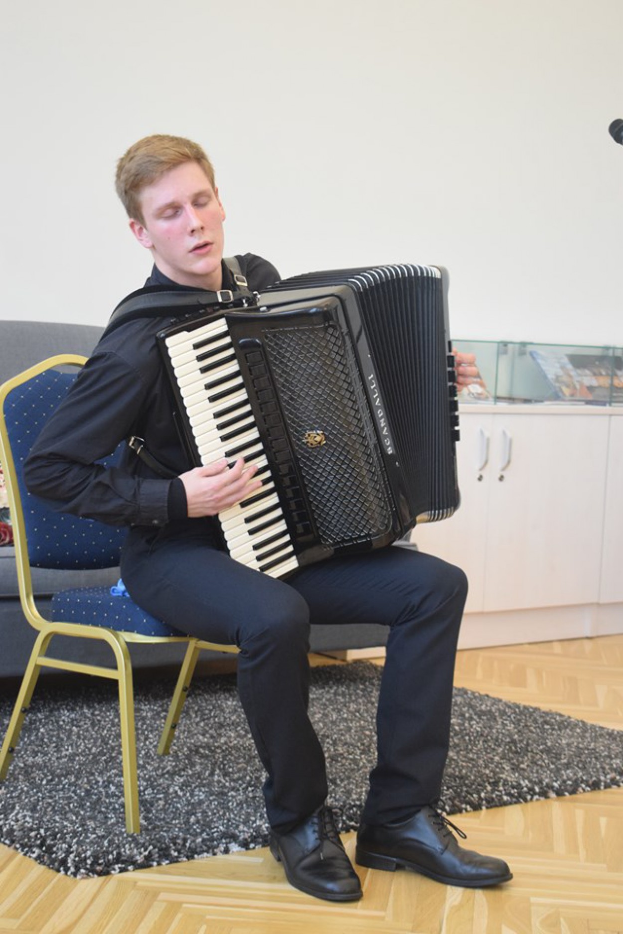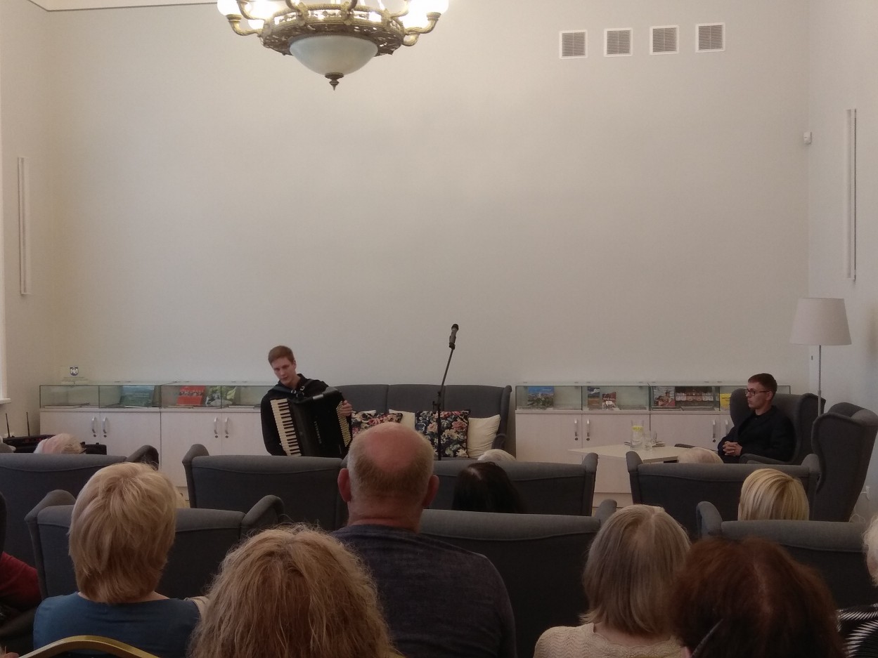 Tarp literatūrinių kūrinių bibliotekos svečiams savo konkursinę muzikinę programą pristatė kraštietis, šiuo metu Kauno Juozo Gruodžio konservatorijoje besimokantis akordeonistas Karolis Lukoševičius. Janinos Miščiukaitės meno mokykloje ir Raimundo Samulevičiaus progimnazijoje mokęsis jonavietis padovanojo eilę puikių kūrinių: renginyje suskambo Johano Sebastiano Bacho "Preliudas" ir "Fuga" D-dur iš 2 GTK tomo, Isaaco Albénizo "Serenada" iš Ispaniškosios Siuitos, Davoro Bobičiaus "Toccata", Domenico Scarlatti "Sonata", Vladislavo Zolotaryovo "Sonata" nr. 3 ir 4, Francko Angelio "Impasse" 2 dalis bei Johanneso Brahmso "Vengrų šokiai" nr. 5.