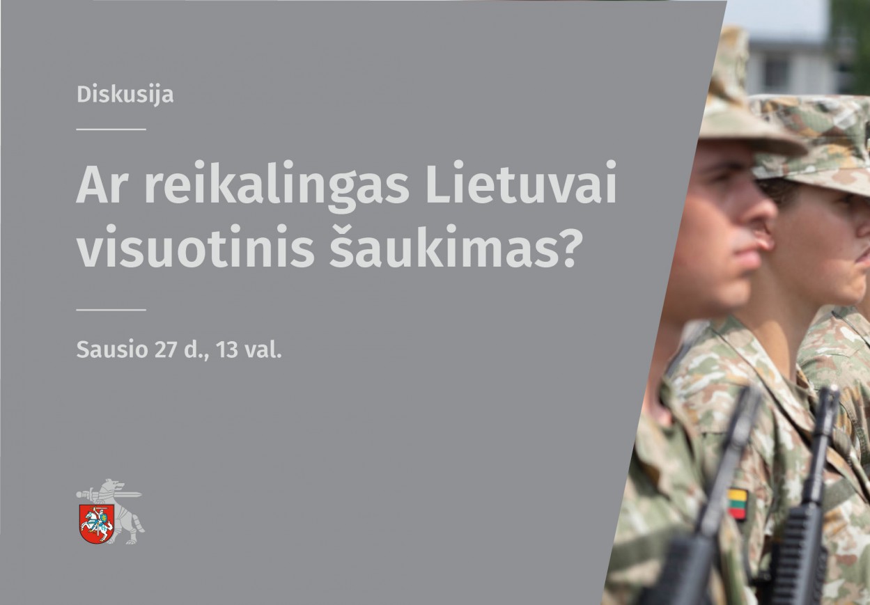 Krašto apsaugos ministerija (KAM) kviečia visuomenę dalyvauti atviroje diskusijoje „Ar reikalingas Lietuvai visuotinis šaukimas?“, kuri vyks sausio 27 d. 13 val. nuotoliniu būdu nuorodoje: https://fb.me/e/1U3LWhi8h