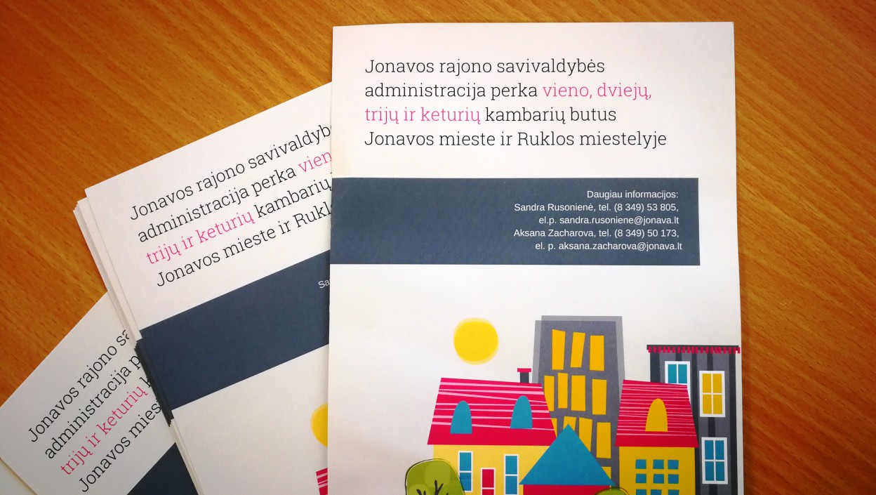 Nekilnojamųjų daiktų paskirtis, pavadinimas ir pageidaujama nekilnojamųjų daiktų buvimo vieta: Jonavos rajono savivaldybės administracija skelbia pirkimą, siekdama įsigyti vieno, dviejų, trijų ir keturių kambarių butus Jonavos mieste ir Ruklos mstl. Pirkimas skaidomas į dešimt atskirų pirkimo objekto dalių. Butai turi atitikti techninės specifikacijos reikalavimus, nurodytus pirkimo sąlygų 1-4 prieduose. Funkcijos (veikla), kurioms numatoma naudoti nekilnojamąjį daiktą – savivaldybės socialinio būsto fondo sudarymas ir jo remontas, socialinio būsto nuoma (LR Vietos savivaldos įstatymo 6 str. 15 p.).