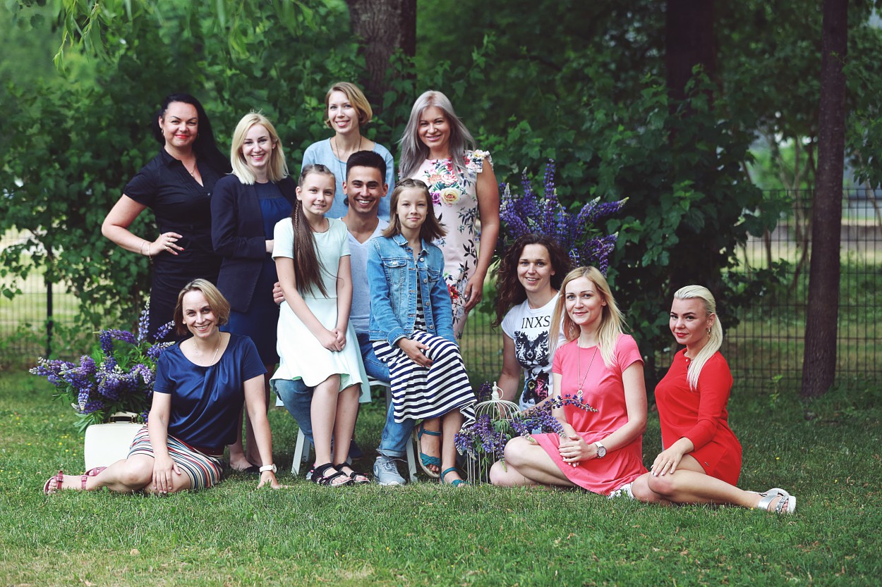 Foto studijoje, įrengtoje po atviru dangumi, išpuoštoje ryškiais lubinų žiedais, išskirtinei fotografijai mamos pozavo drauge su savo mažyliais. Norinčias nuotraukose atrodyti ryškiau, papuošė profesionali visažistė. Mamų šukuosenomis pasirūpino kirpėja.
