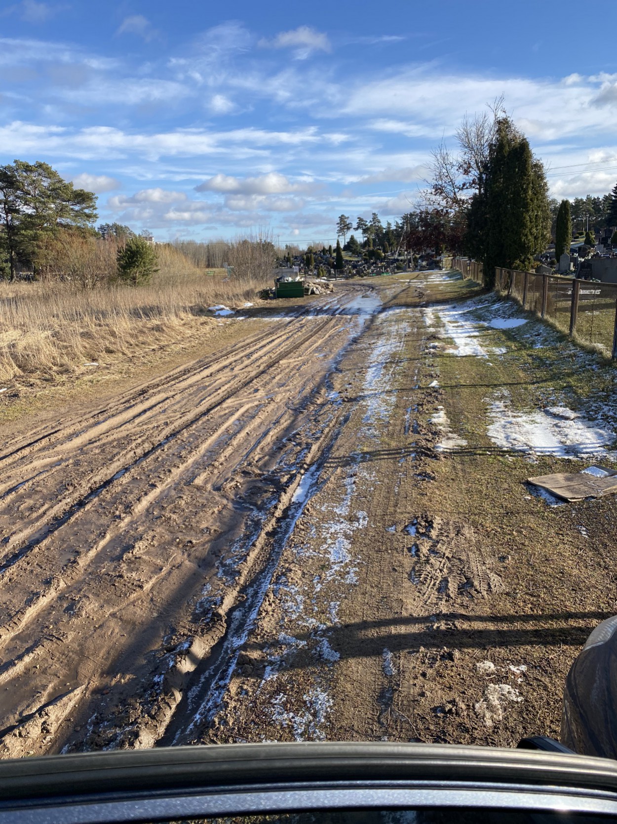 Tęsiant mintį apie Šmatų kapines, portalą jonavoszinios.lt pasiekė skaitytojo klausimas, kada bus tvarkomas keliukas iš kitos pusės kapinių? Skaitytojas atsiuntė ir keliuko nuotrauką, bei teigia, kad jis nuolatos duobėtas ir pažliugęs, o atvykstantys lankyti artimųjų kapų, priversti klampoti.